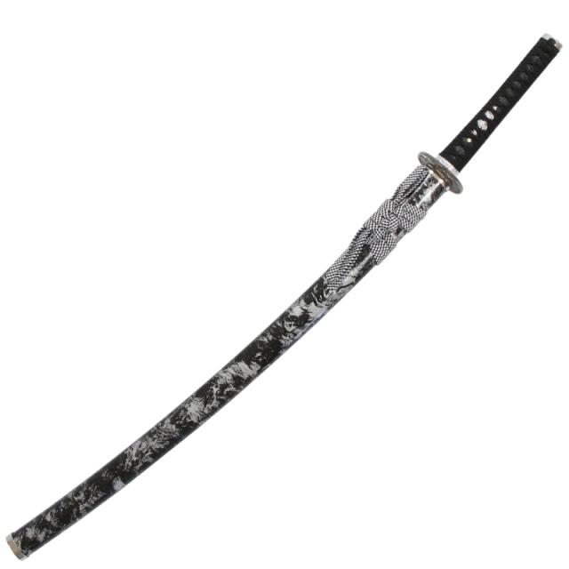 刀身造:合金鍍金、竜刀身仕様、黒銀乱れ塗り鞘