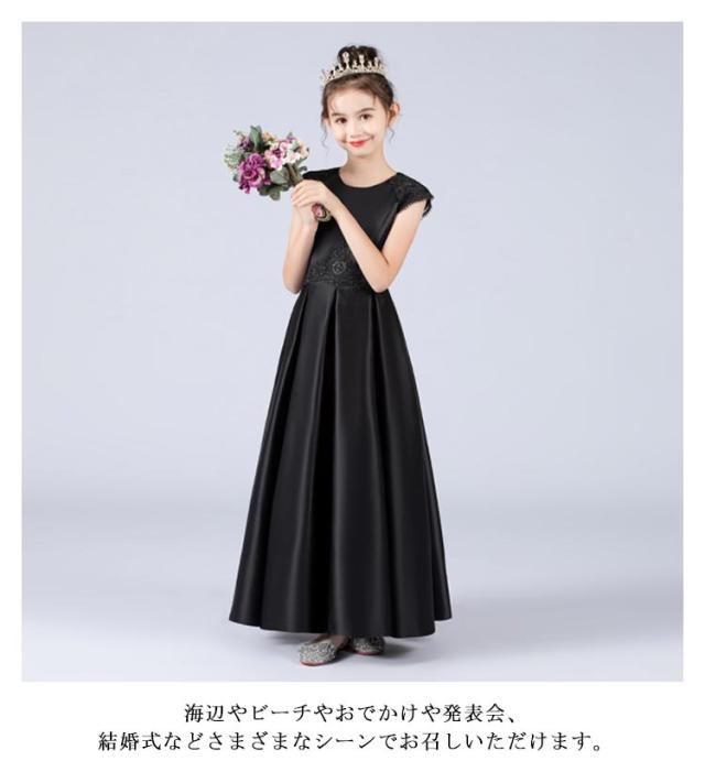 ブラック こどもドレス 子供ドレス ワンレット ロングドレス 170cm ネイビー キッズドレス Aラインドレス 発表会 130cm 140cm 150cm 160cm 110cm 100cm 発表会 ドレス 結婚式 キッズドレス 子ども ドレス 発表会 上質 120cm