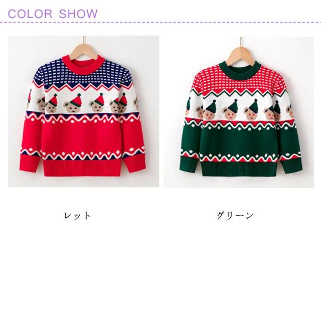 | 柔らかい肌触りのキッズ用クリスマスセーターが最新登場! 着るだけでクリスマスの雰囲気が一気に盛り上がります! 編み柄が可愛さをたくさん詰まりました! 水洗いが可能なため、お家でお手入れしやすいのも嬉しいポイントです。 人気のクリスマスデザインがポイントになったカジュアルに合わせやすい1枚です! | |