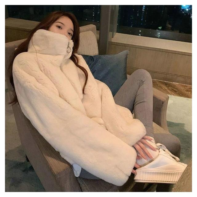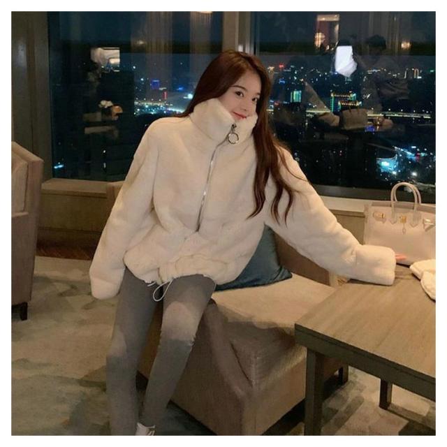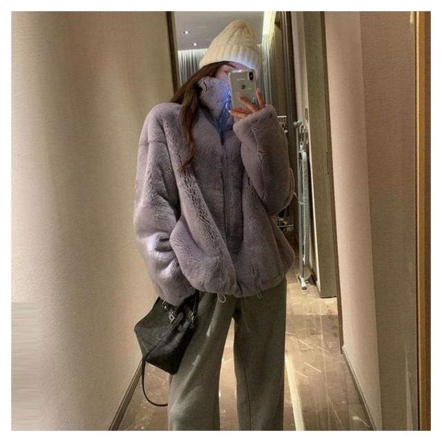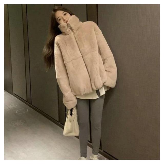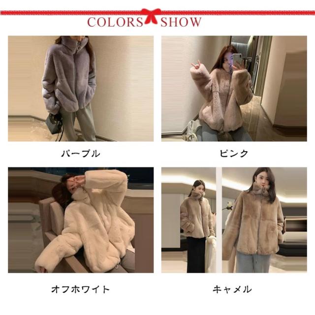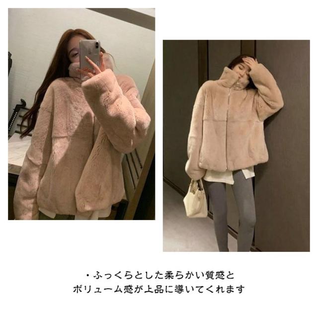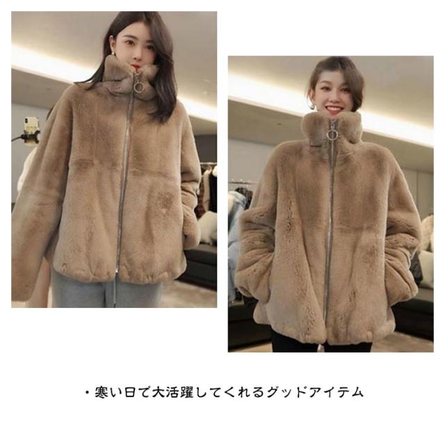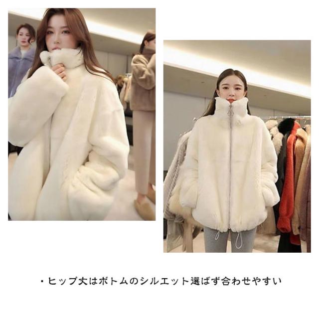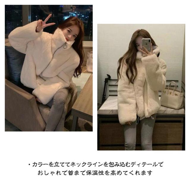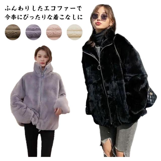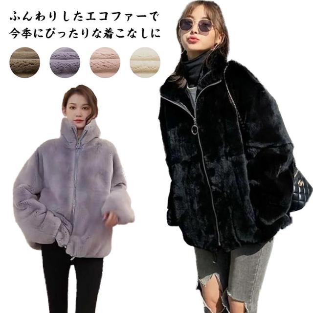 モコモココート ポケット付き 防寒 女性 ジャケット ファスナー エコファー レディース 暖かい 冬アウター ファーコート カジュアル おしゃれ 秋 無地 冬