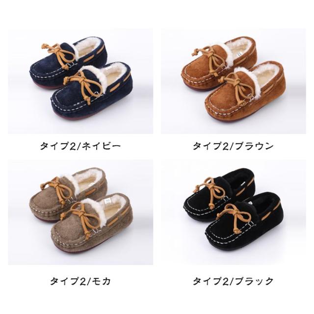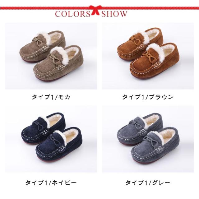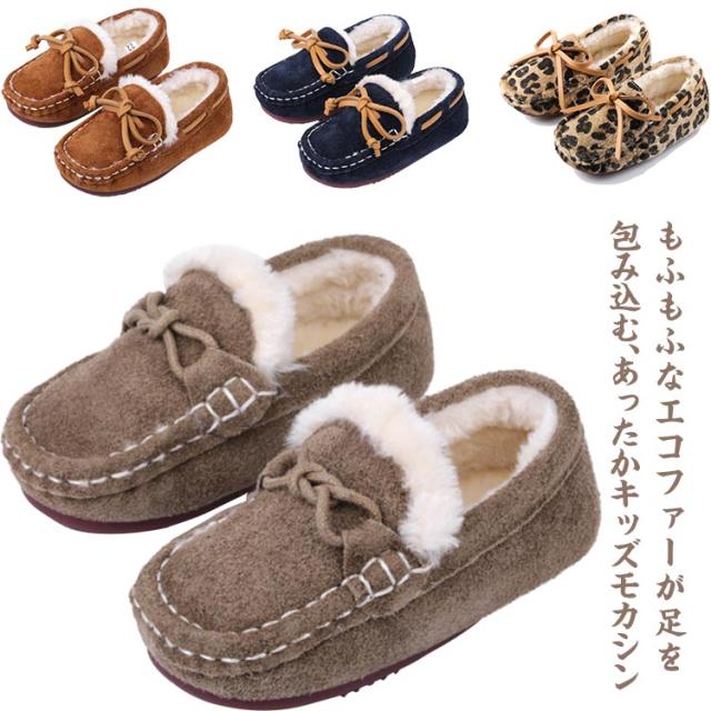 キッズ 裏ボア 履きやすい 歩きやすい 子供 滑りにくい エコファー リボンモカシンシューズ 冬 靴 ぺたんこ スリッポン 柔らか 保温 防寒 屈曲性 あったか 女の子 男の子 選べる2タイプ モカシン