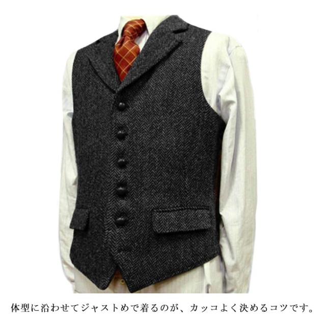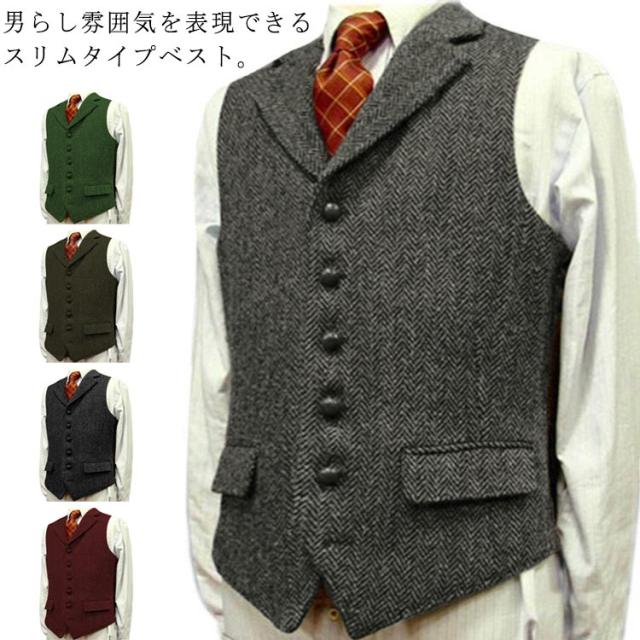 | 男らし雰囲気を表現できるスリムタイプベスト。 体型に沿わせてジャストめで着るのが、カッコよく決めるコツです。 上質感を演出するレイヤードスタイルにぴったりです。 シンプルですっきりとした色展開、ビジネスマンにも重宝します! 結婚式、ビジネスやフォーマルシーンで活躍するおしゃれな一枚。 | |