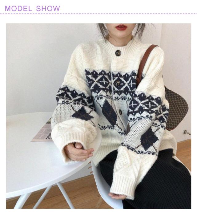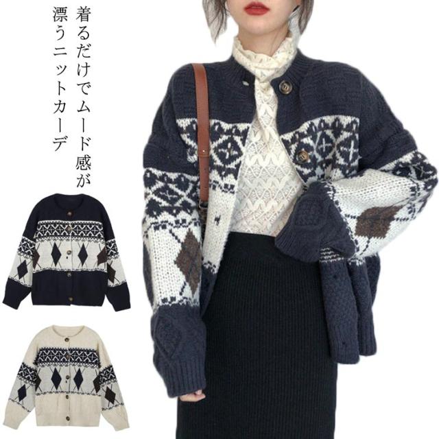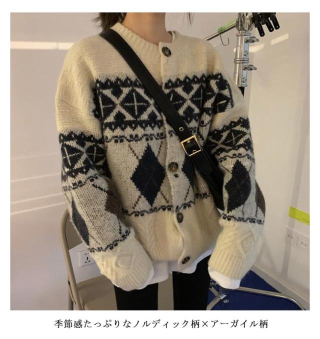 | 着るだけでムード感が漂うニットカーデ 季節感たっぷりなノルディック柄×アーガイル柄 2種類の柄を取り入れたデザインが可愛く、コレ1枚でシンプルなコーデも垢抜ける 程よい厚みでゆるっと感があり、ごわつきにくく、中に着込めるので寒い日でも安心 | |
