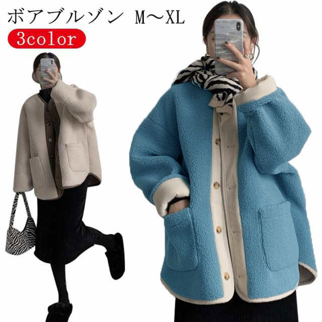ボア もこもこ 冬 ジャケット アウター レディース ブルゾン 秋 ベージュ ゆったり ボリューム オーバーサイズ おしゃれ ボア 長袖 あったかい 暖かい アウター ポケット ビッグシルエット ざっくり 暖か 羽織り カジュアル