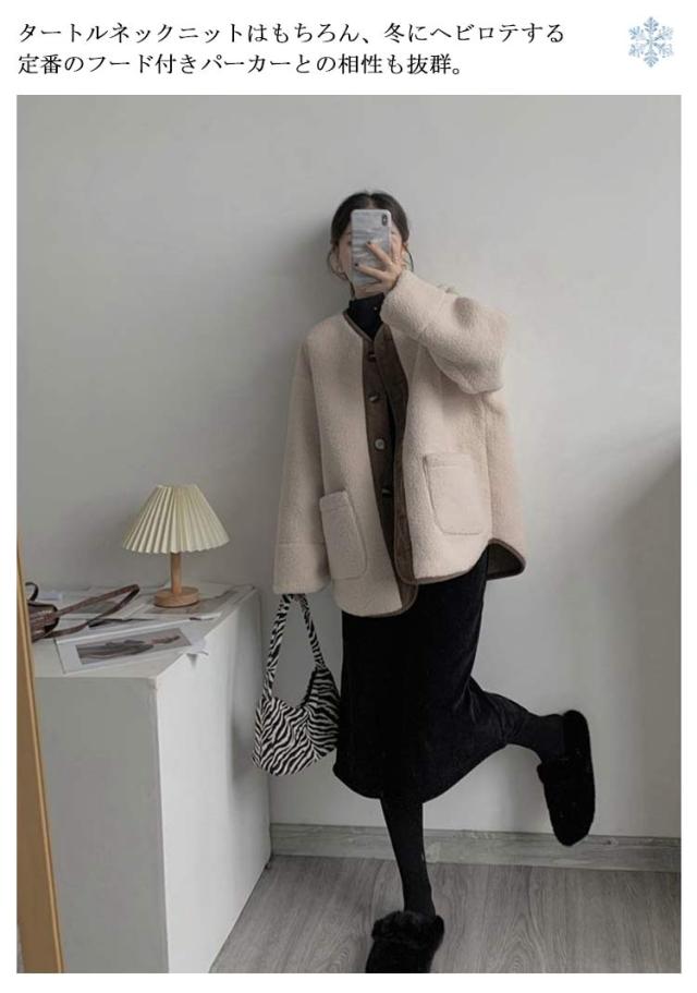| ボア素材で暖かく、顔まわりをすっきり見せるノーカラーデザインになっています。 大きめビッグシルエットなので、人気のボリューム袖やバルーン袖とも合わせやすいサイズ感。 ボアのモコモコ素材がシーズンムードを高めてくれるアウター♪ タートルネックニットはもちろん、冬にヘビロテする定番のフード付きパーカーとの相性も抜群。 | |