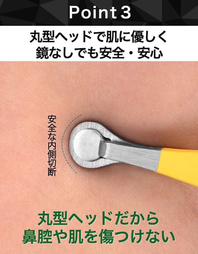 丸型ヘッドで肌に優しく切りたい毛を挟むだけで1秒切断!