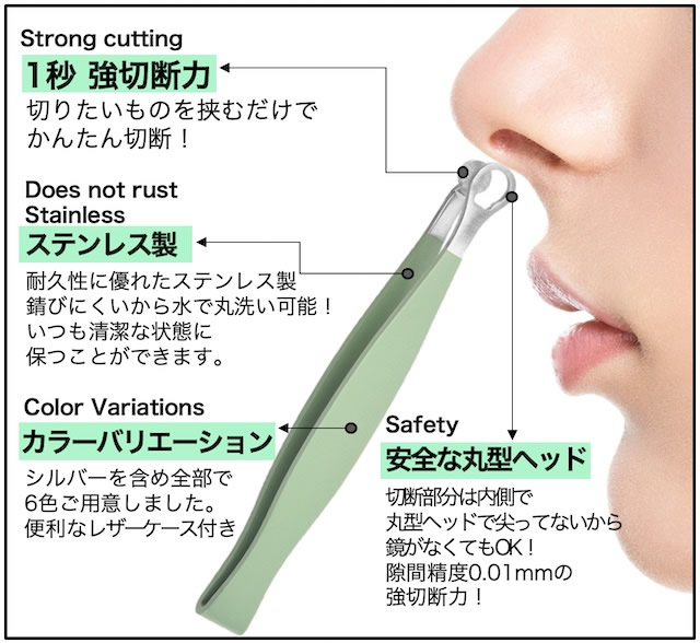 ●hanabiは毛抜きではなく毛をカットする商品です。ご使用の際は引っ張るのではなく挟んでカッティングをすることができます。