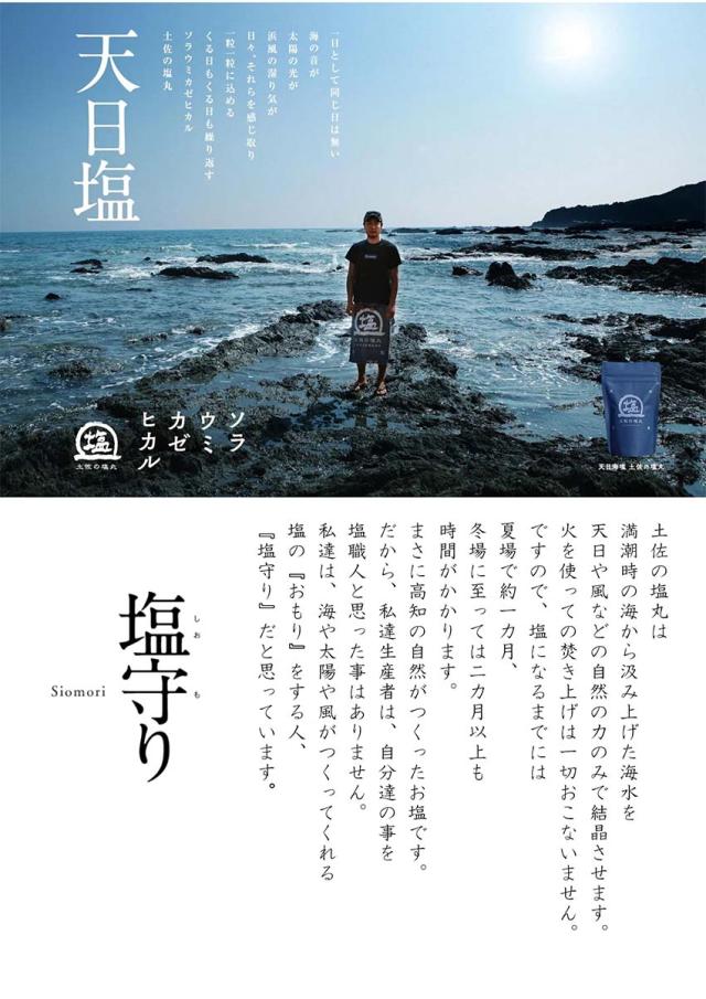 塩職人ではなく、海や太陽や風がつくってくれる塩の『おもり』をする人、『塩守り』(しおもり)達と高知の自然が作る大変希少なお塩です。