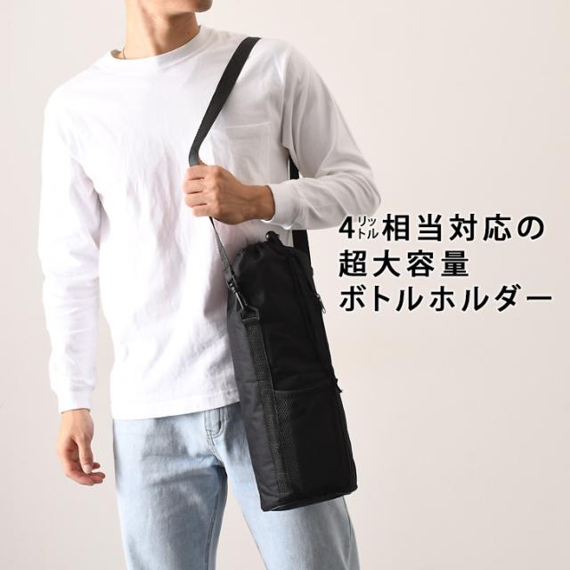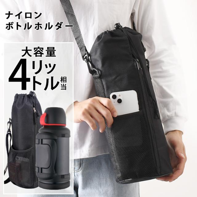 新作 大容量 4L ナイロン ボトルホルダー 水筒カバー 水筒ホルダー ボトルカバー 4リットル ショルダー 肩掛け 斜めがけ バッグ 持ち運び 収納 ポケット 大きめ ナイロン ブラック 黒 登山 アウトドア 部活