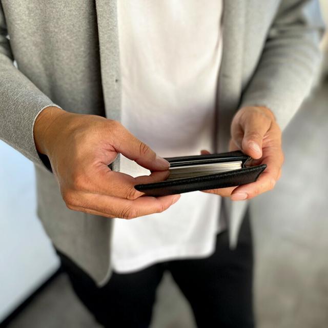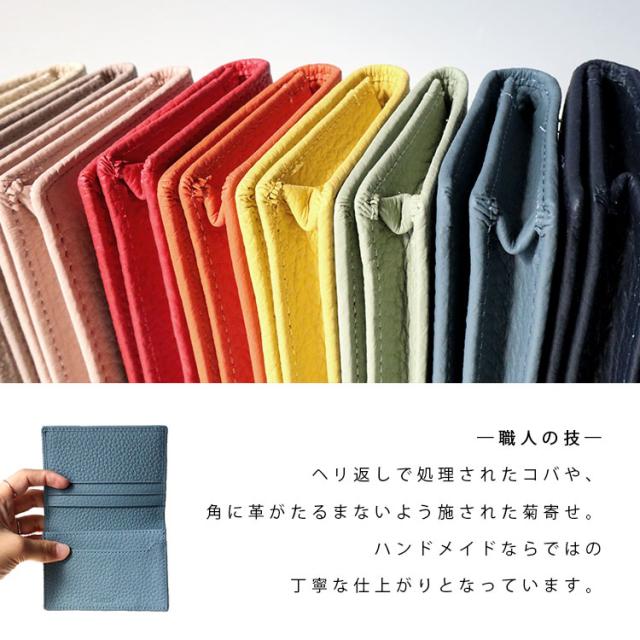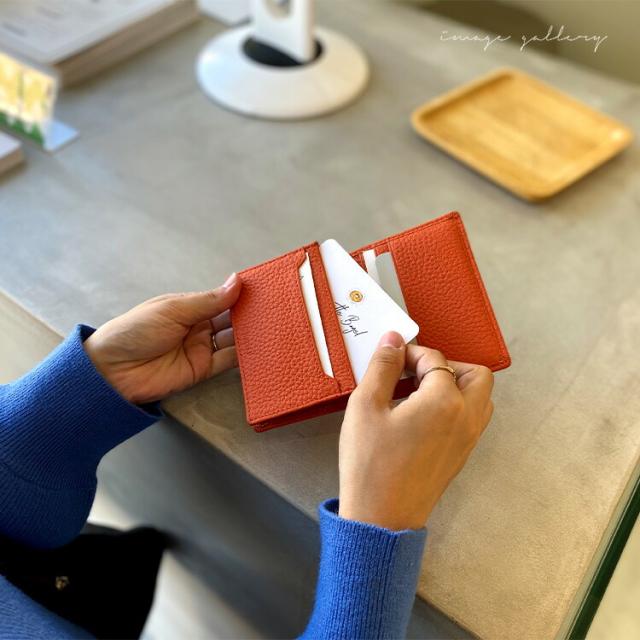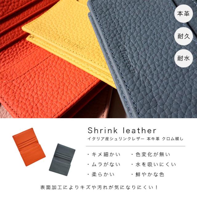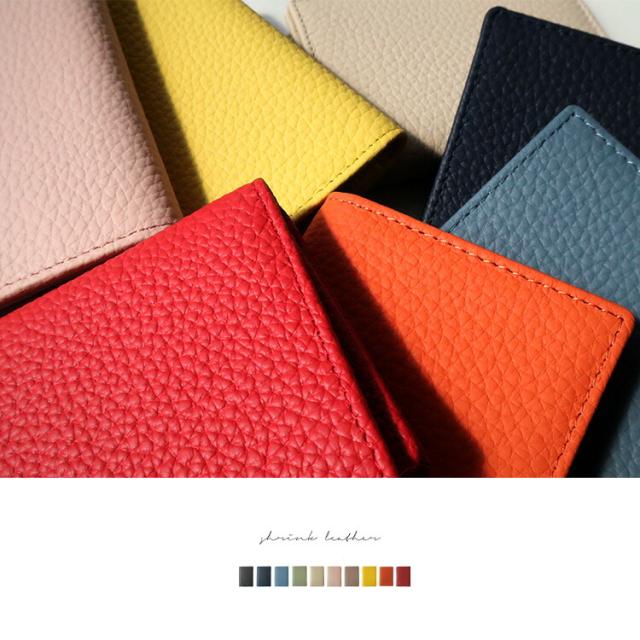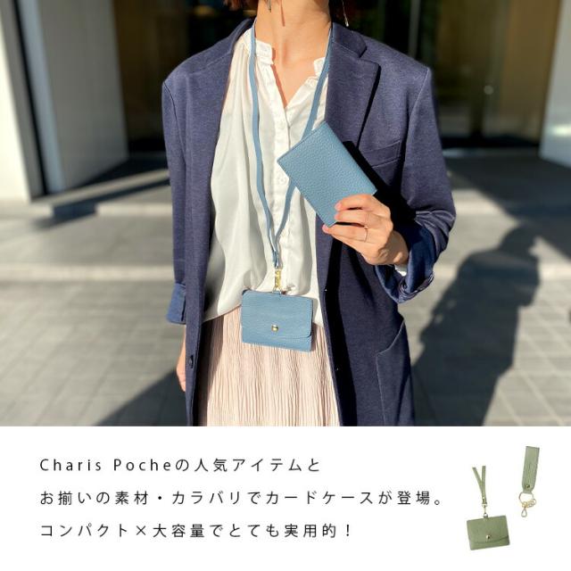 Charis Poche 人気ウォレット【女性が欲しかった小さい財布】シリーズと同じ革を使用し、お財布とセットで合わせて使えるようにデザインしたCharis Pocheオリジナルの本革製名刺ケースです。本革ならではのシボ感が楽しめるシュリンクレザーを使用しており、老若男女問わず選びやすいカラーをご用意しました。