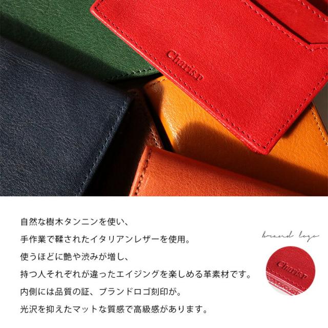Charis Poche 人気ウォレット【女性が欲しかった小さい財布】イタリアンレザーバージョンと同じ革を使用し、お財布とセットで合わせて使えるようにデザインしたCharis Pocheオリジナルの本革製名刺ケースです。イタリアンレザー特有の落ち着いたカラーリングに上質な質感が楽しめます。