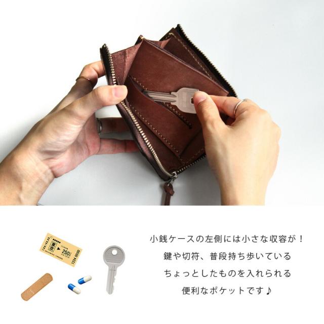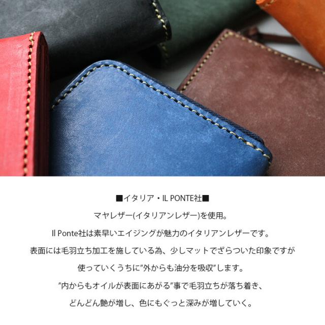 Il Ponte社製のマヤレザーを使用してハンドメイドで製作したデイズアートオリジナルのL字ファスナー型ミニ財布です。植物タンニン鞣し革は使用していくことで艶が増し色味にもぐっと深みが増していきエイジングを楽しむことができます。収納はとってもシンプル。マチ付きで大きく開き、小銭入れの深さとミニポケットがポイントです。ファスナーは安心のYKK社製を使用しておりスムーズな開閉を約束してくれます。