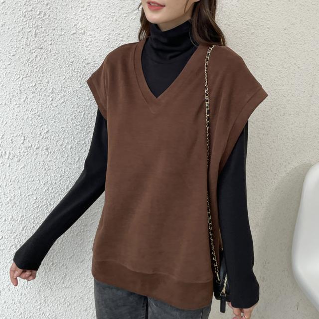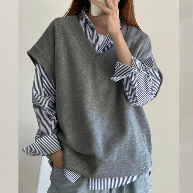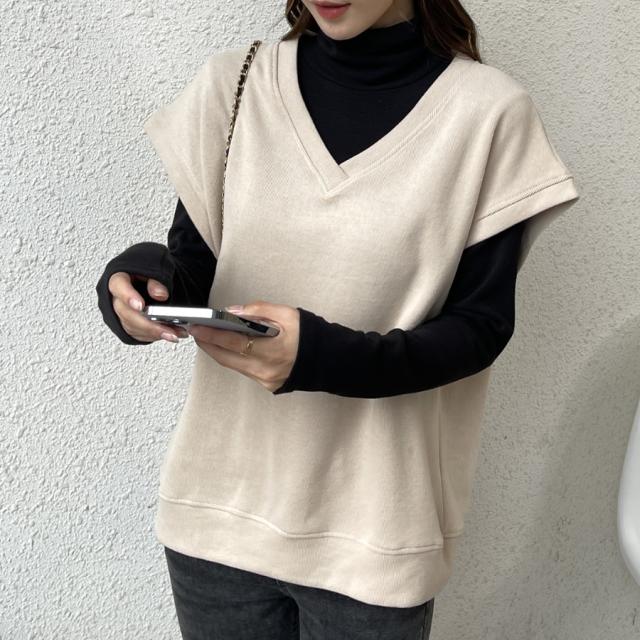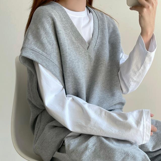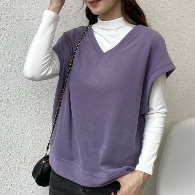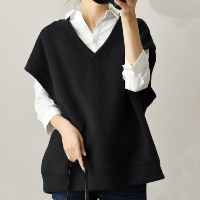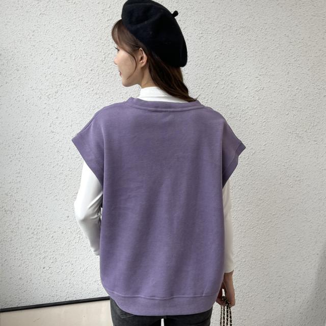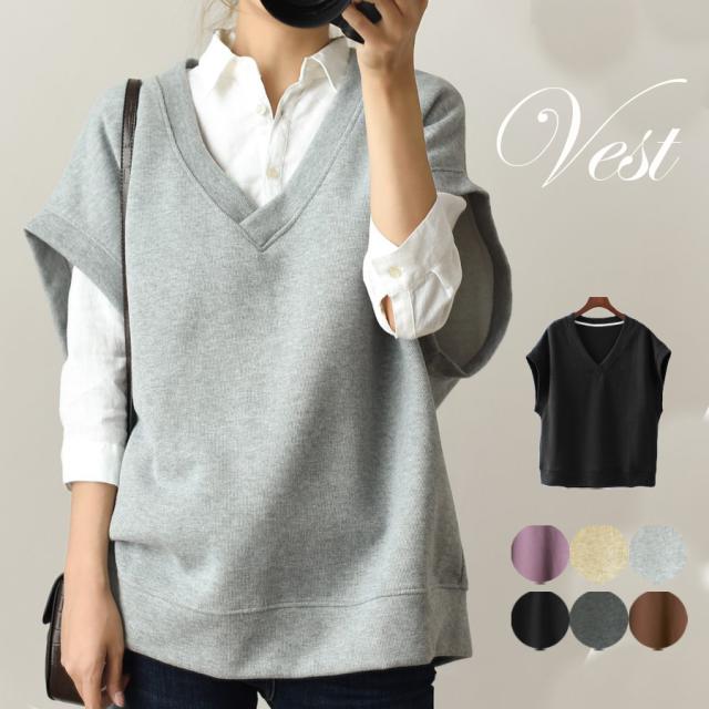 Vネックスウェットベスト トップス プルオーバー おしゃれ 大きいサイズ コットン 綿 大きめ ゆったり トレーナー レイヤード 重ね着 無地 カジュアル レディース 送料無料 SLENDER スレンダ b1012