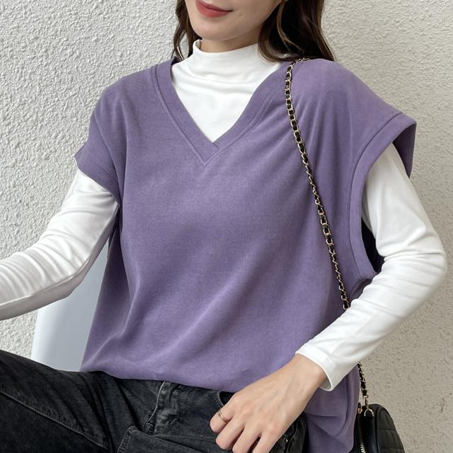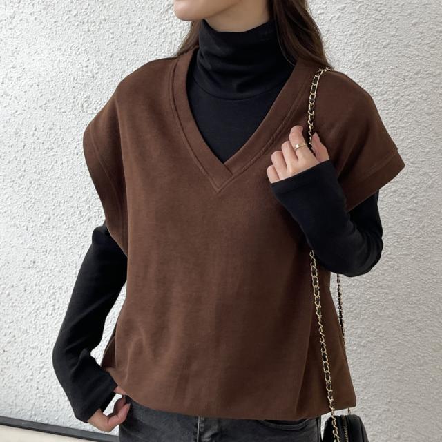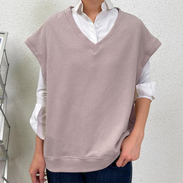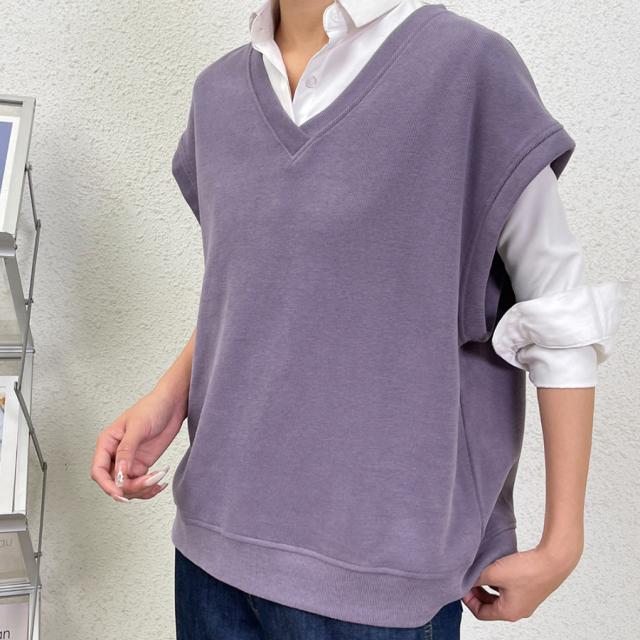 | 商品説明 | オールシーズン着回せるシンプルベスト スウェットニットの柔らかい素材感で着心地よく、 深めのアームホールでレイヤードしやすい。 深めのVネックデザインですっきりした印象に!! |