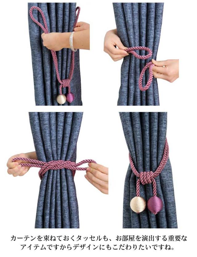 | カーテンのデザインやインテリアに合わせてコーディネート♪ タッセルを変えるだけでお部屋がゴージャスに! カーテンを束ねておくタッセルも、お部屋を演出する重要なアイテムですからデザインにもこだわりたいですね。 いつもの窓辺を華やかにしてくれるアイテムです。 カーテンのデザインやインテリアに合わせてコーディネート♪ カラーバリエーションも豊富なので色々なコーディネイトを楽しんで見てくださいね。 | |