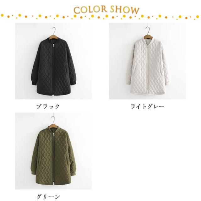 | 3XL-6XL!暖かい中綿キルティングコート。 インナーコートとしても使える。 襟、袖口はリブ仕様になっている。 ポケットがアクセントに、機能的にも◎ お尻をすっぽり隠れる丈感で、ボトムスとバランスよく着こなせる。 軽くて暖かいキルティングコートはこれからの季節大活躍する重宝アイテムです。 | |