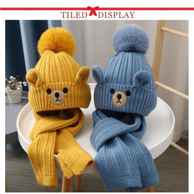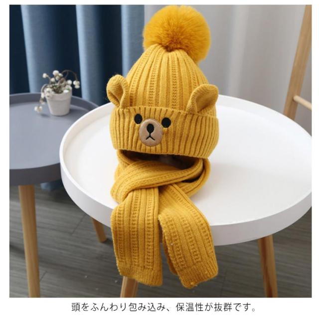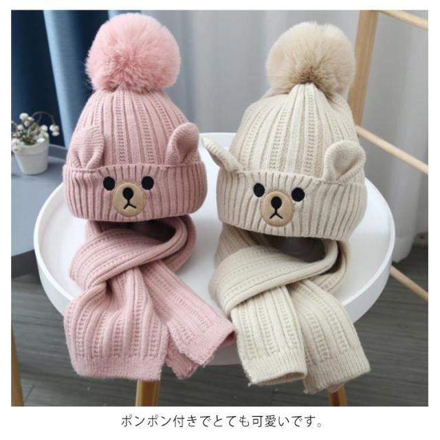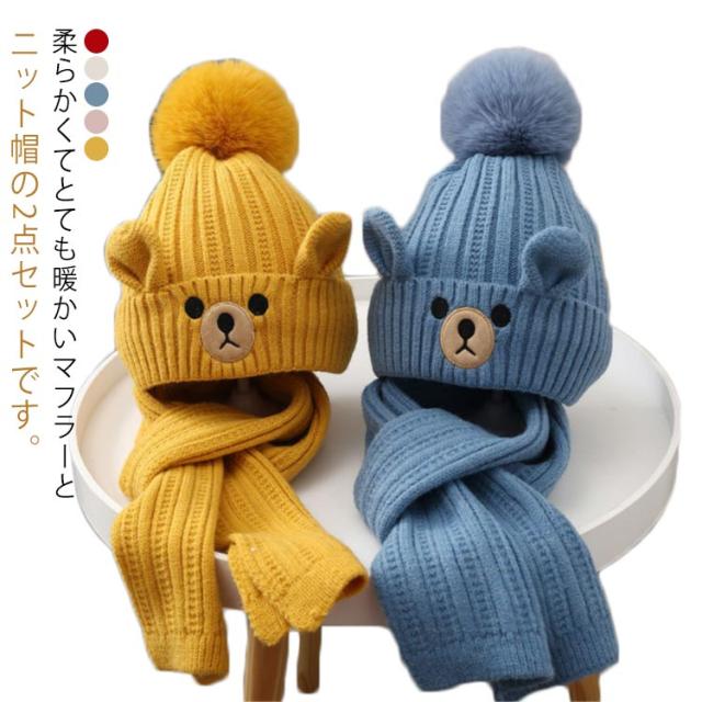 マフラー ニット帽 2点セット 子供 秋 冬 スヌード 帽子 ポンポン キッズ ベビー 男の子 女の子 ネックウォーマー あったか 全5色 防寒 暖かい かわいい 秋冬 保温 おしゃれ 子ども こども 防風 ニットキャップ 送料無料