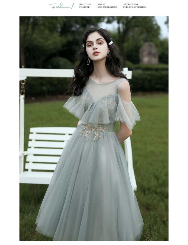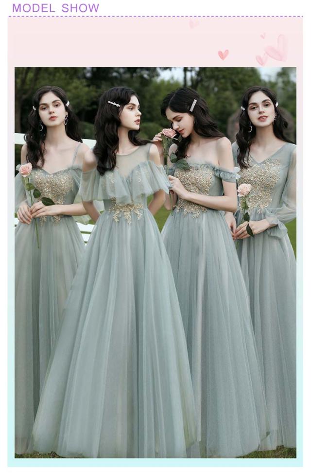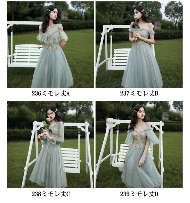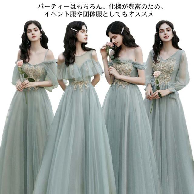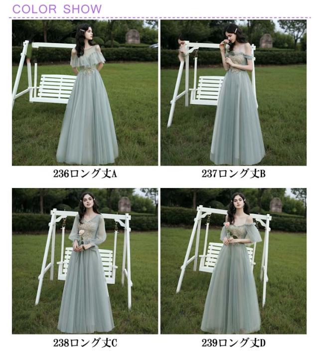 ーティードレス ブライズメイド ドレス ロングドレス 半袖 中袖 5分袖 長袖 イブニングドレス ロング丈 パーティー 成人式 忘年会 結婚式 演奏会 チュール フォーマル オフショルダー Aライン カラードレス 無地