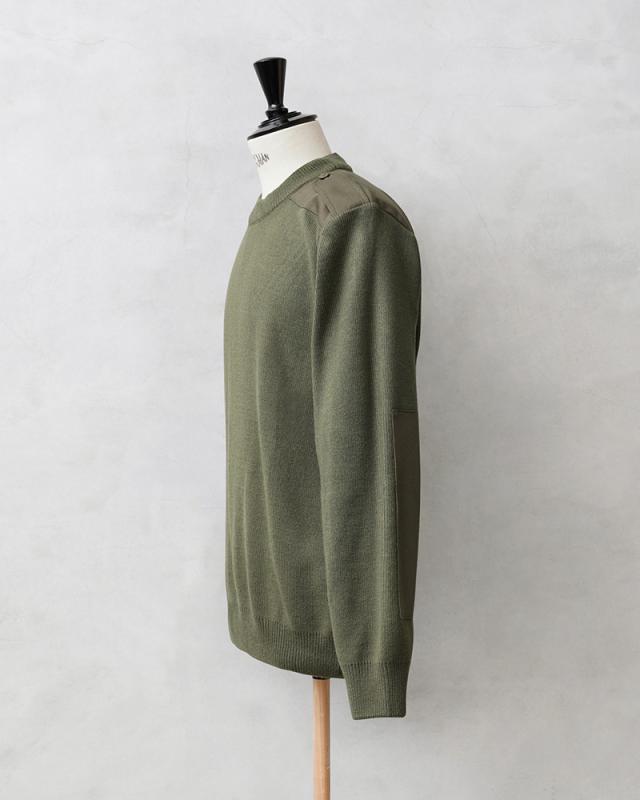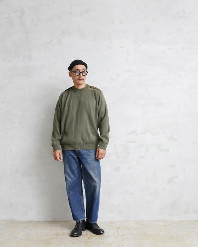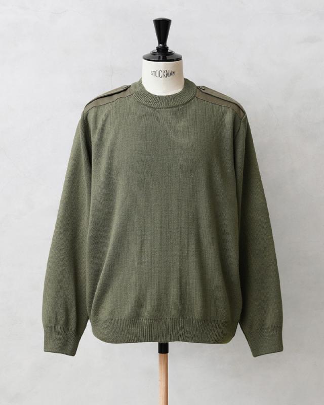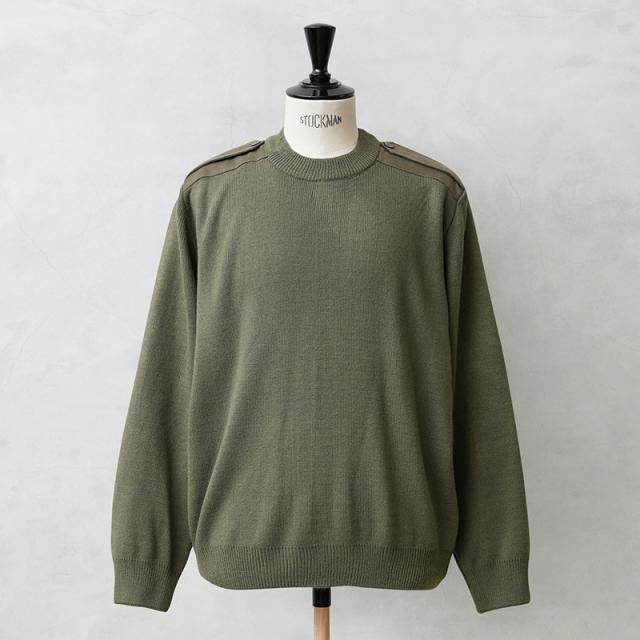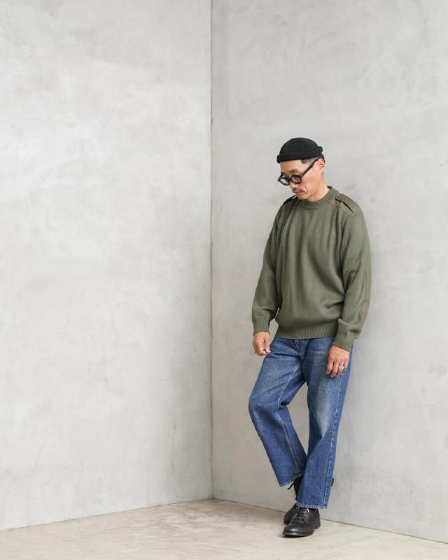 ルーマニア軍から定番のデザインであるコマンドセーターが入荷しました。ヨークや肘などの摩耗しやすい部分にはコットン系のツイル素材で補強がされています。肩のエポレットなどコマンドセーターのディテールに加えて、首元、袖先や裾は編みを変えることで適度なフィット感があるリブが採用されています。シンプルで何にでも合わせやすく、1枚持っているとなにかと使えるアイテムです。