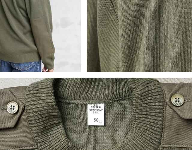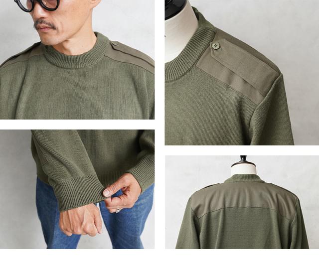 実物 新品 デッドストック ルーマニア軍 クルーネック コマンドセーター【Cx】【I】|ミリタリー トップス メンズ カーキ オリーブ 実物放出品 軍物 無地 おしゃれ デザイン エポレット 肘あて