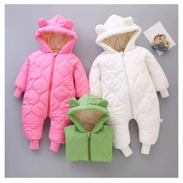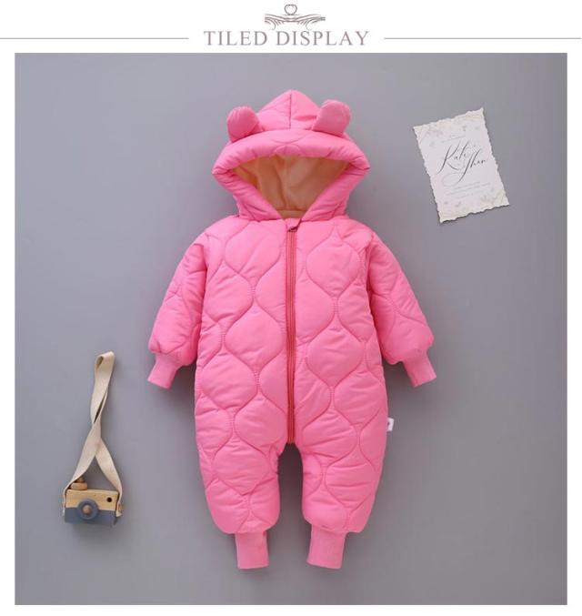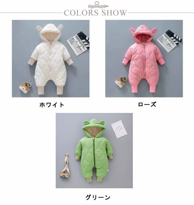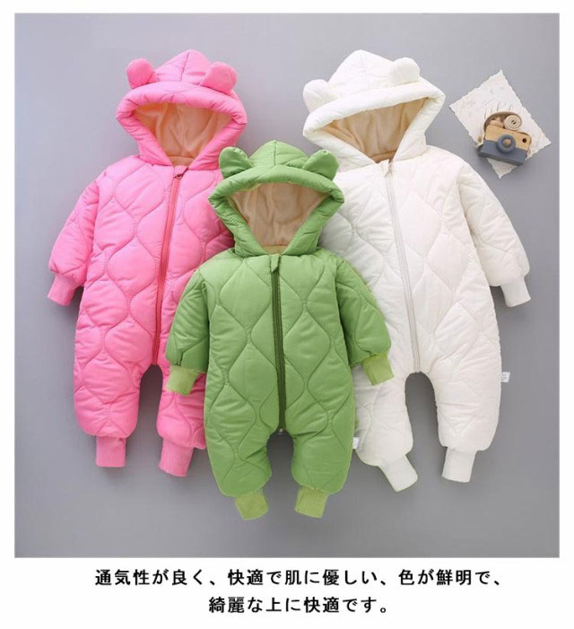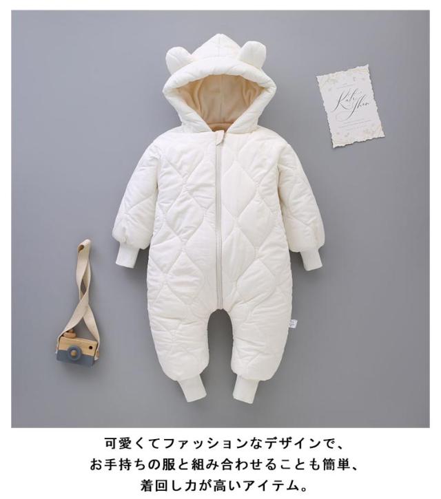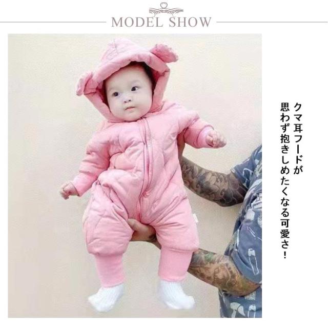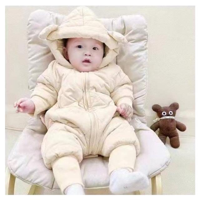 【送料無料】かわいい くま耳フード付き ベビー ジャンプスーツ ベビー服 カバーオール 雪遊び 裏起毛 子供服 カバーオール キッズ 男の子 女の子 軽量 中綿コート ロンパース 新生児 韓国風 可愛い 防寒着 普段着 通学 撥水素材 秋冬 長袖 暖かい あったか