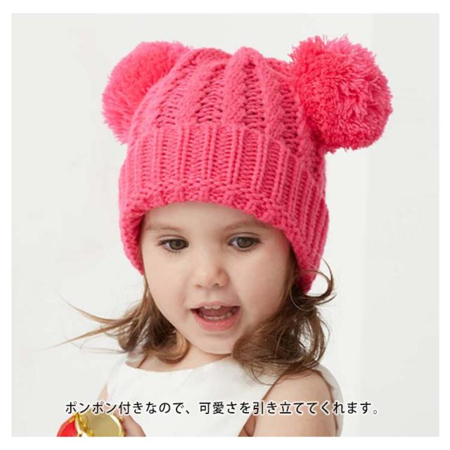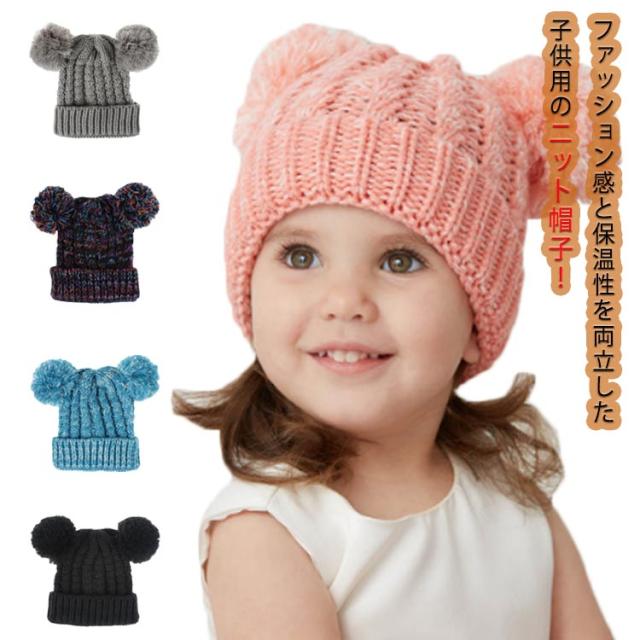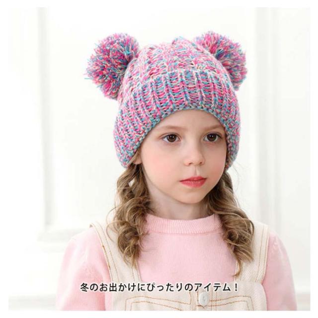 ニット帽 キッズ 子供帽子 女の子 女児 子供用 防寒 寒さ対策 帽子 秋冬 ボンボン付き 可愛い あったか おしゃれ 幼稚園 保育園 プレゼント クリスマス 通学 通園 送料無料