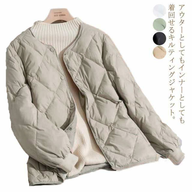 ノーカラージャケット キルティングジャケット ブルゾン キルティングコート ショート丈 中綿コート レディース 軽量 アウター 羽織り 冬物 秋冬 30代40代50代60代