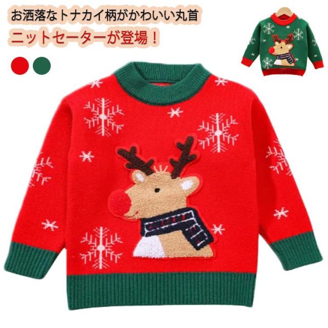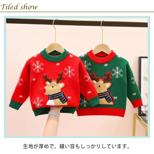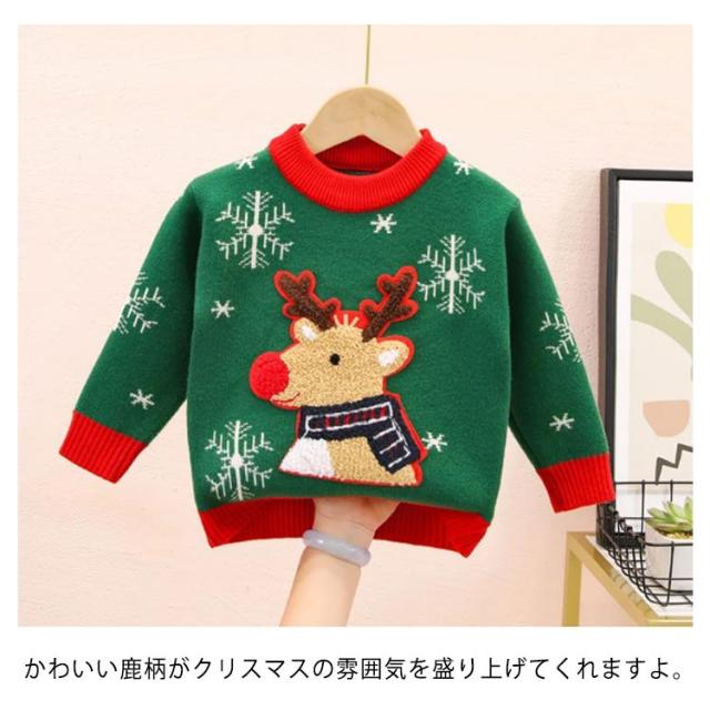キッズ セーター クリスマス衣装 ニットセーター 子供 厚手 長袖 トップス 冬 サンタ風 トナカイ 男の子 女の子 暖かい カジュアル 防寒 通園 通学 写真撮影 年賀状