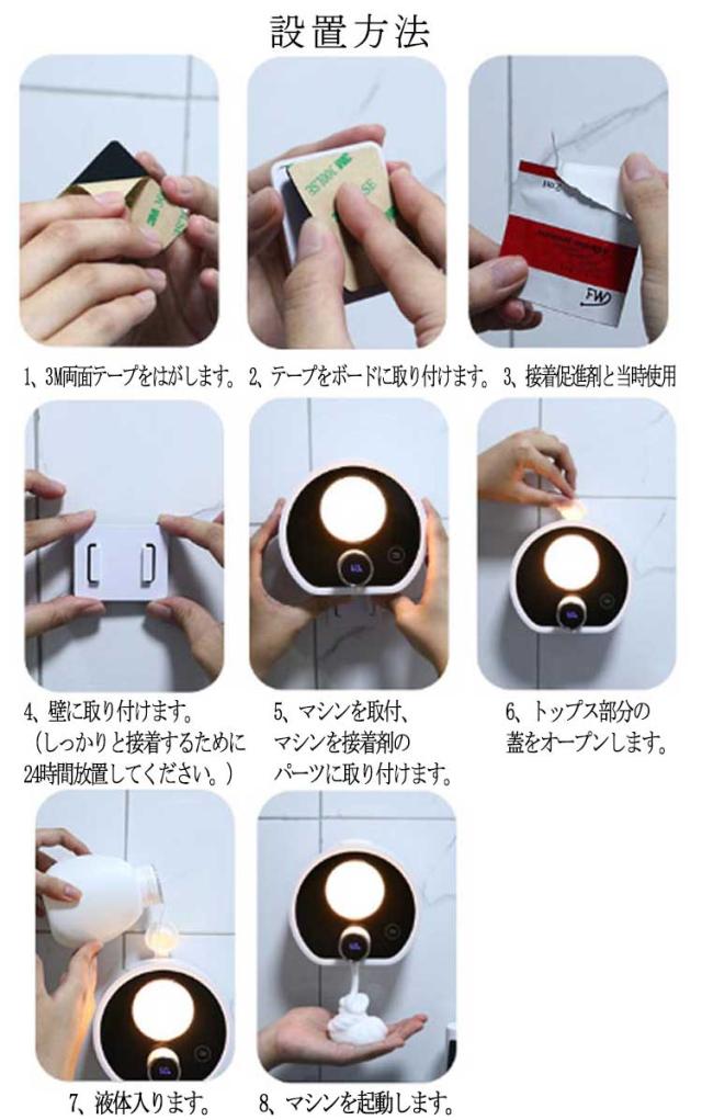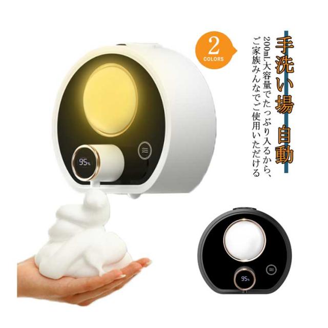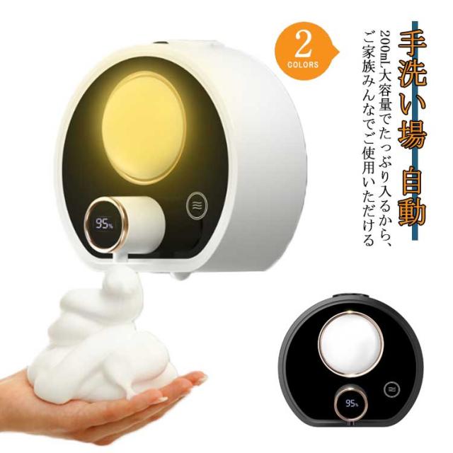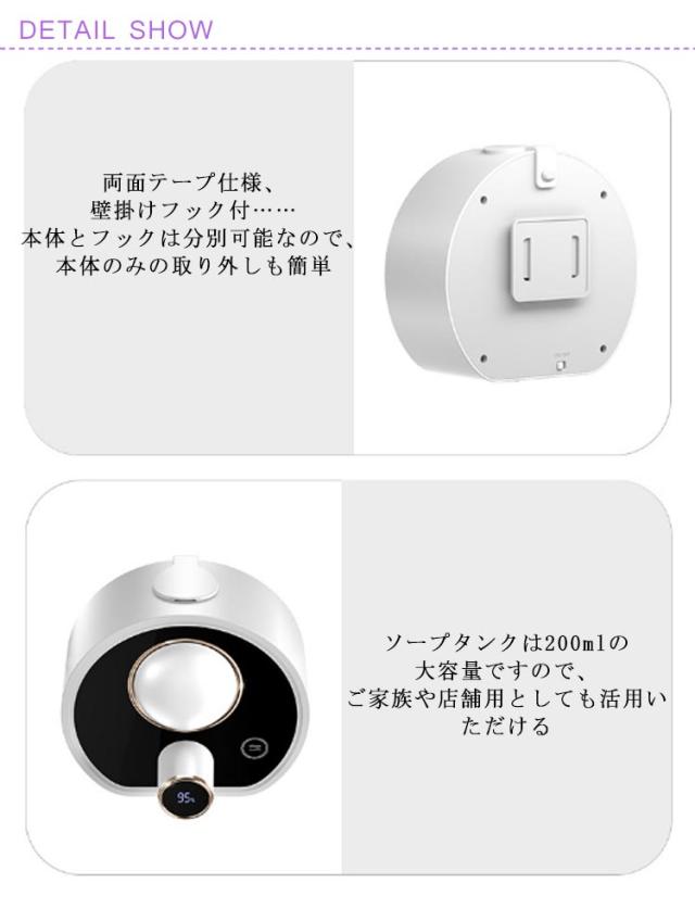 最新版 壁掛け式自動ソープディスペンサー 自動ソープディスペンサー 200ML容量 ハンドソープ ディスペンサー ハンドソープディスペンサー 自動 泡 ノータッチ 室温表示 感染予防 キッチン 手洗い場 洗面所に適用