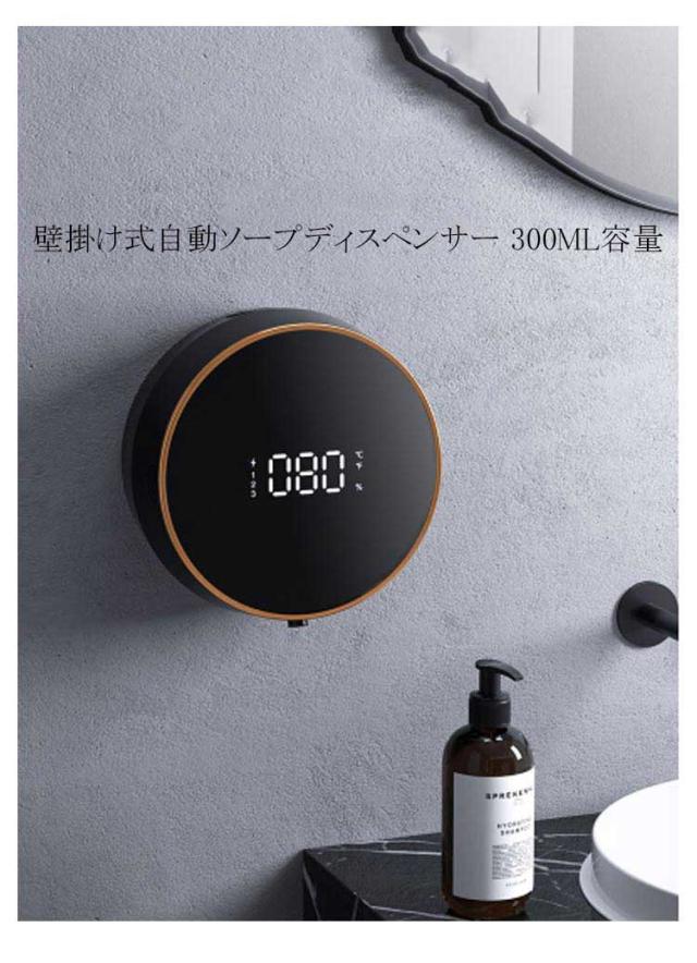 壁掛け式自動ソープディスペンサー 300ML容量 ハンドソープ ディスペンサー ハンドソープディスペンサー 自動 泡 ノータッチ 室温表示 感染予防 キッチン 手洗い場 洗面所に適用