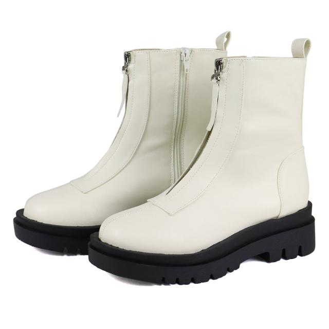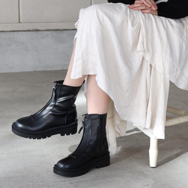 ・フロントジップ装飾が特徴的で、トレンド感のあるショートブーツ。