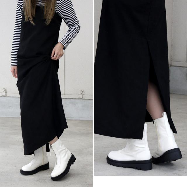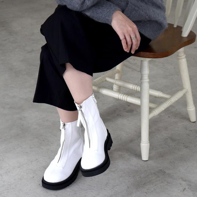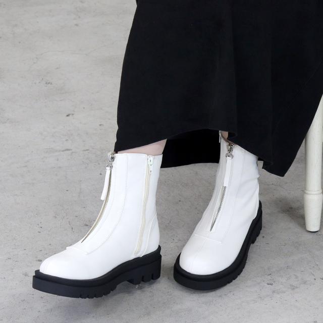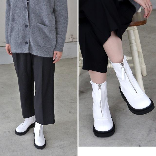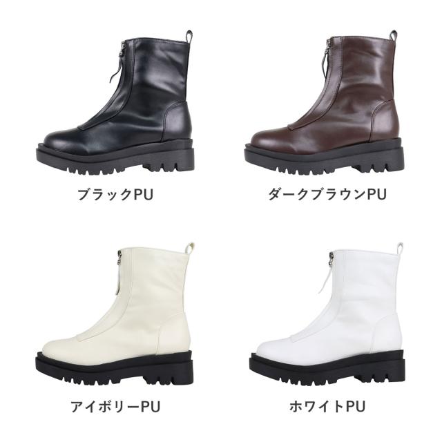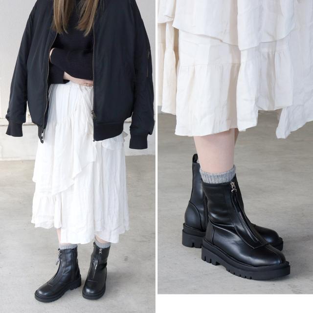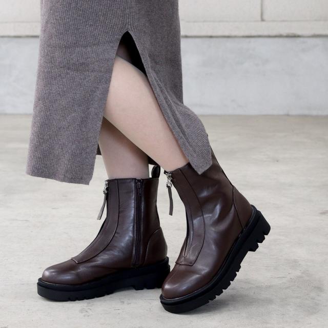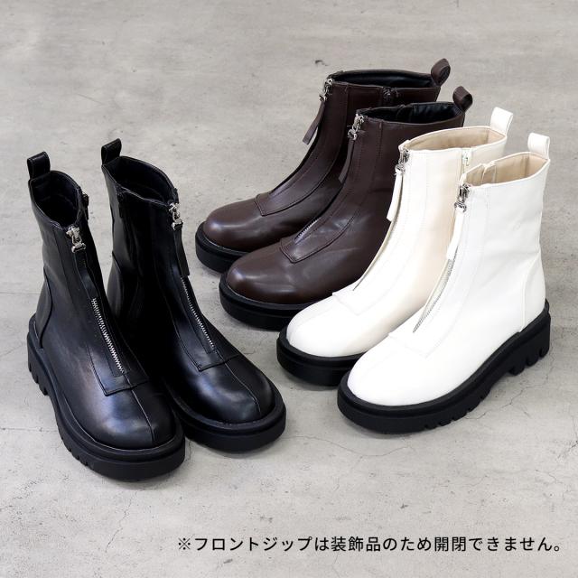 ・フロントジップ装飾が特徴的で、トレンド感のあるショートブーツ。