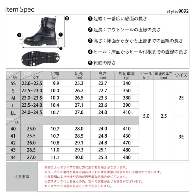 ブーツ レディース ショート丈 厚底 5cmヒール サイドジップ 履きやすい 合成皮革 男女兼用 No.9092 22.0-27.0cm 大きめ レザー 黒 白 茶 ファスナー 歩きやすい ユニセックス 大きいサイズ 小さいサイズ メンズ ブラック ホワイト ブラウン LiBERTYDOLL リバティードール