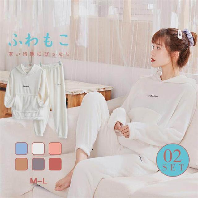 ルームウェア レディース 冬 寝巻きルームウェア 上下セット もこもこ レディース パジャマ 長袖 フリース マイクロファイバー 厚手 ゆったり 刺繍ロゴ 可愛い 冬 部屋着 長ズボン トップス 長袖 プルオーバー 50代 40代 30代 20代 婦人