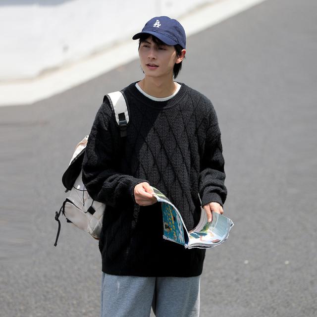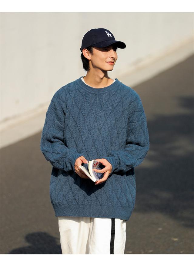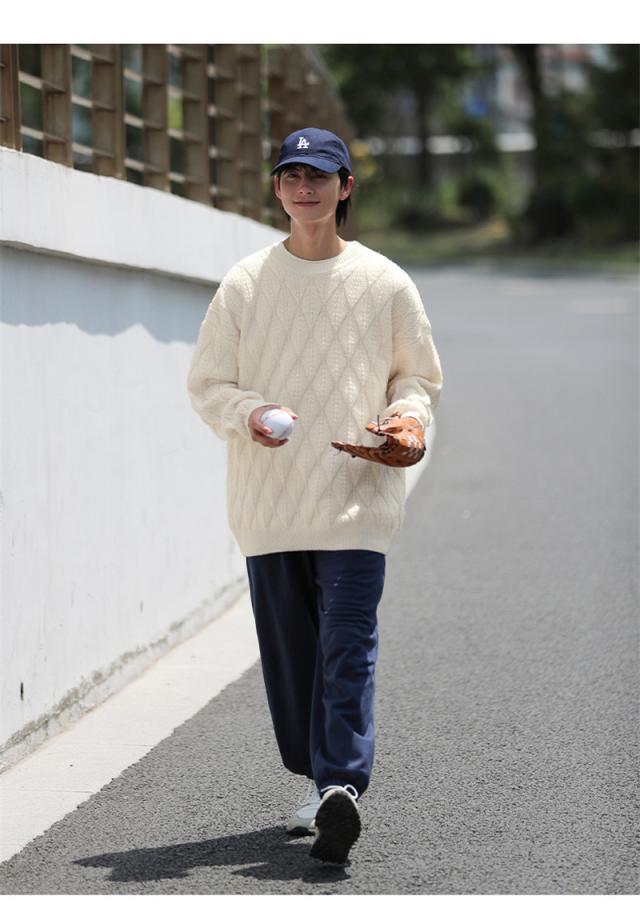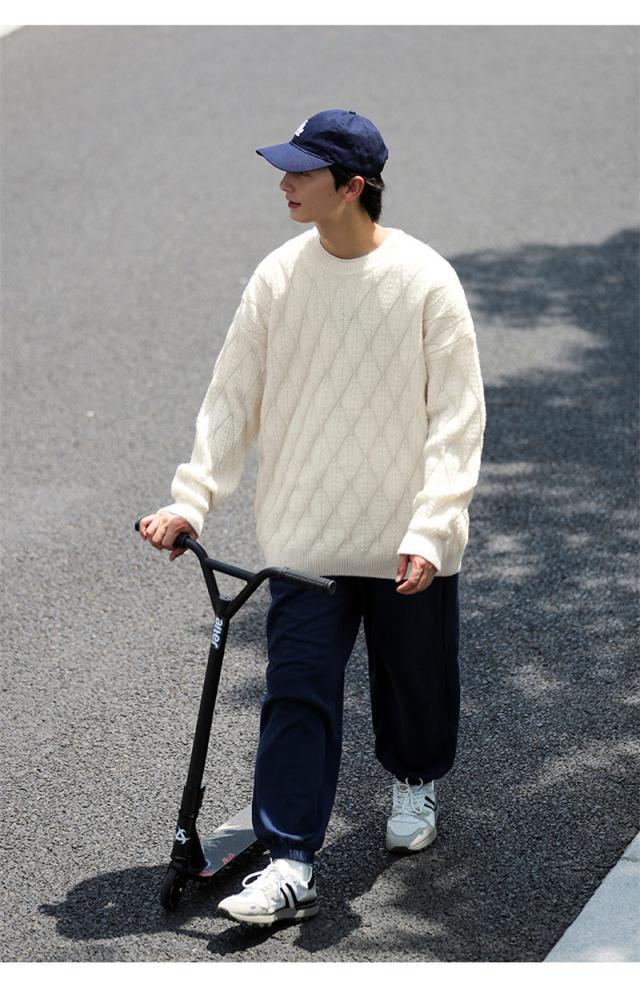 ニットセーター メンズ レディース クルーネック ケーブル カップル ゆったり カットソー 無地 シンプル セーター 長袖 男女兼
