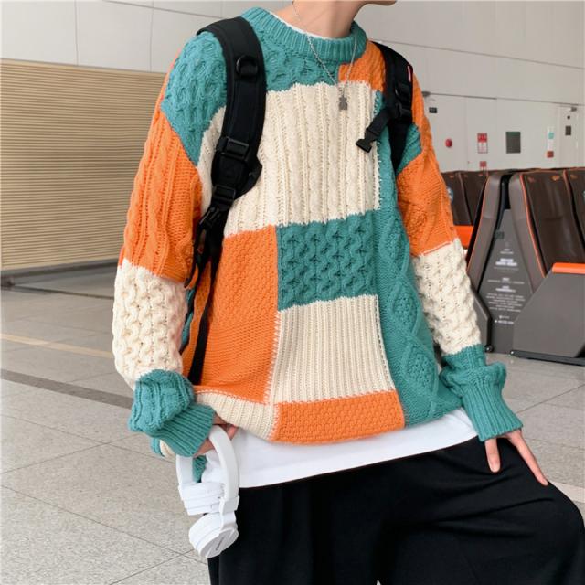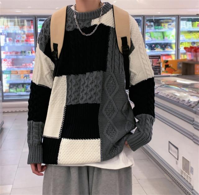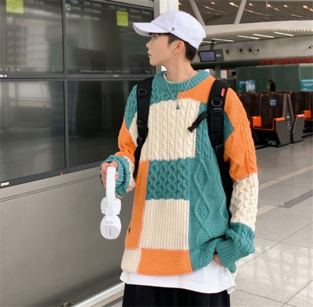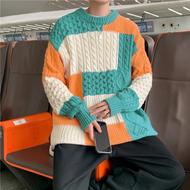 ニットセーター メンズ レディース クルーネック ケーブル カップル ゆったり カットソー 無地 シンプル セーター 長袖 男女兼