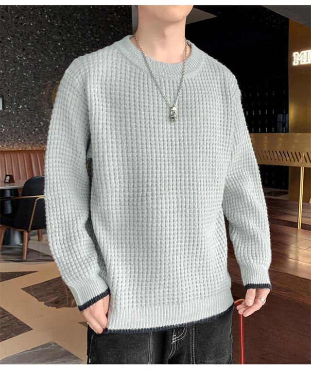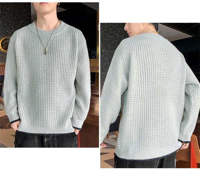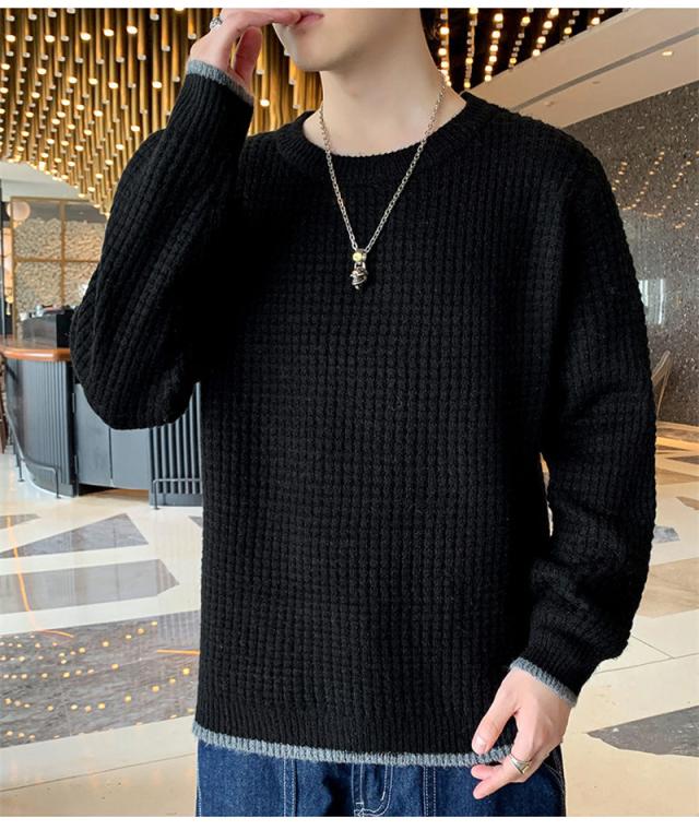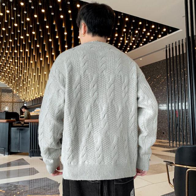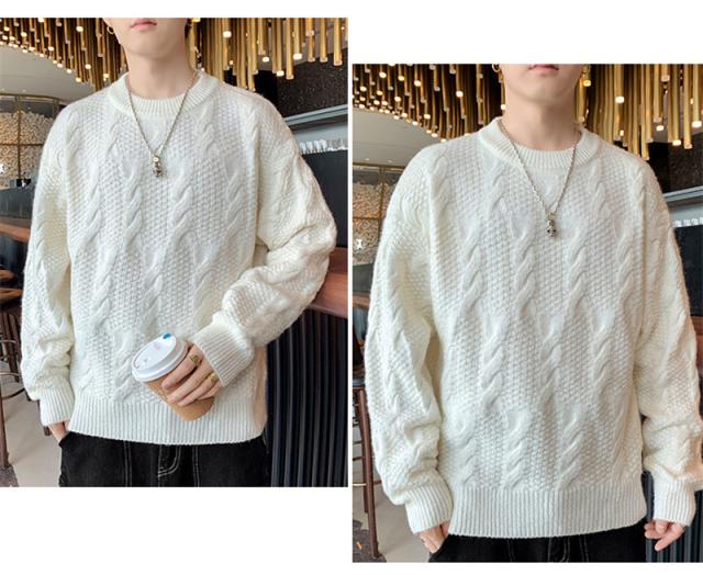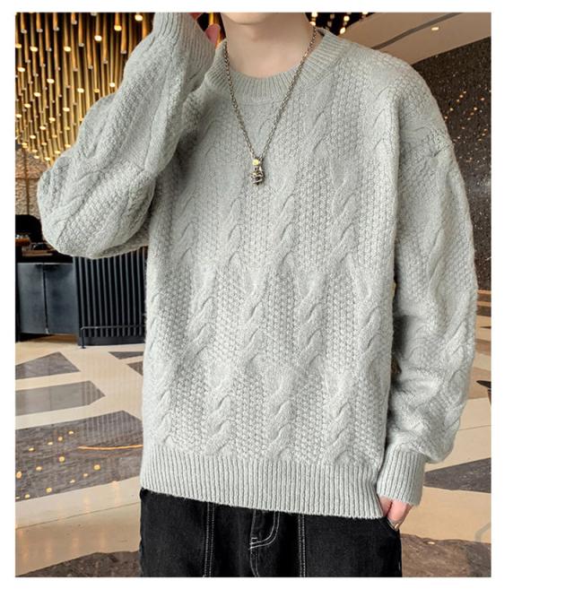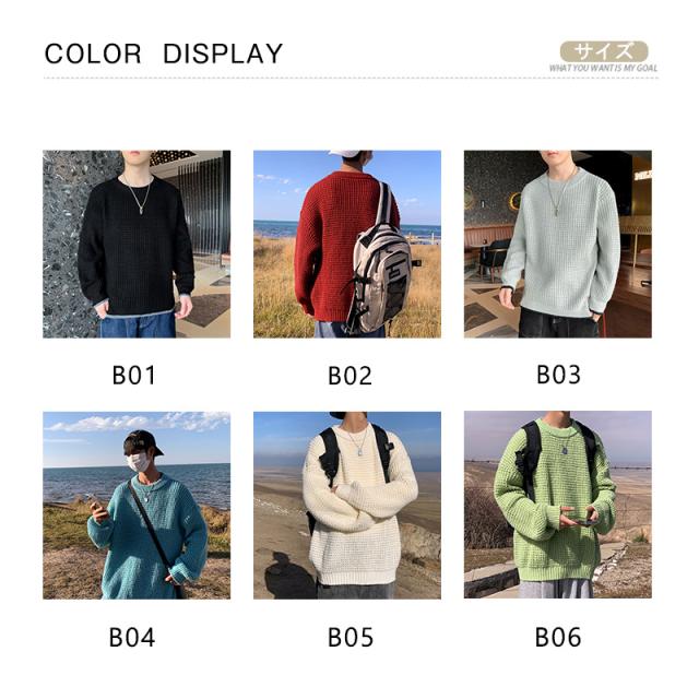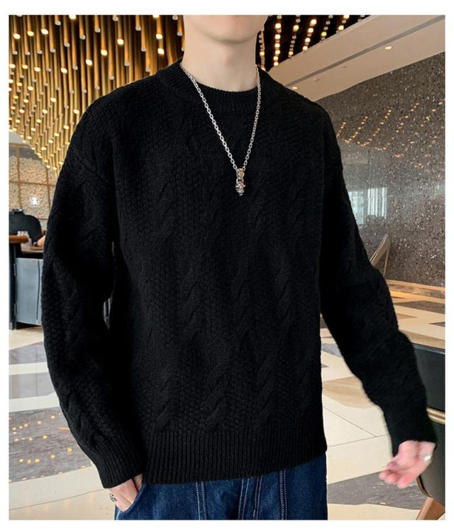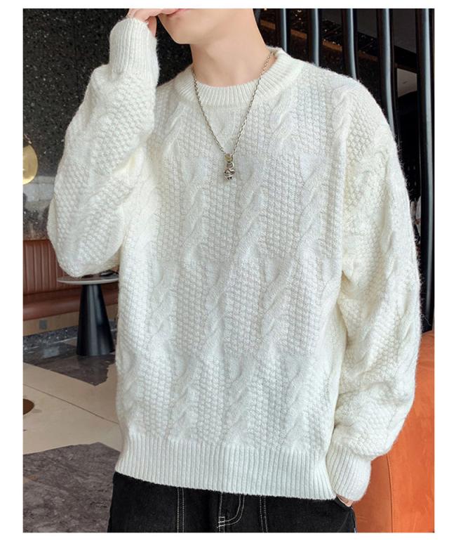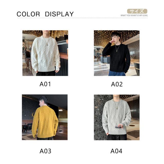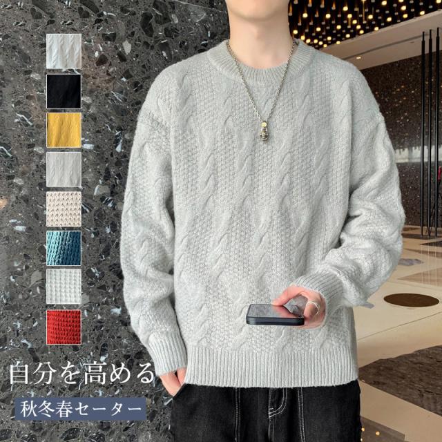 ニットセーター メンズ クルーネック ケーブル編み カットソーニット 無地 ゆったり シンプル ビジネス 重ね着 セーター 長袖