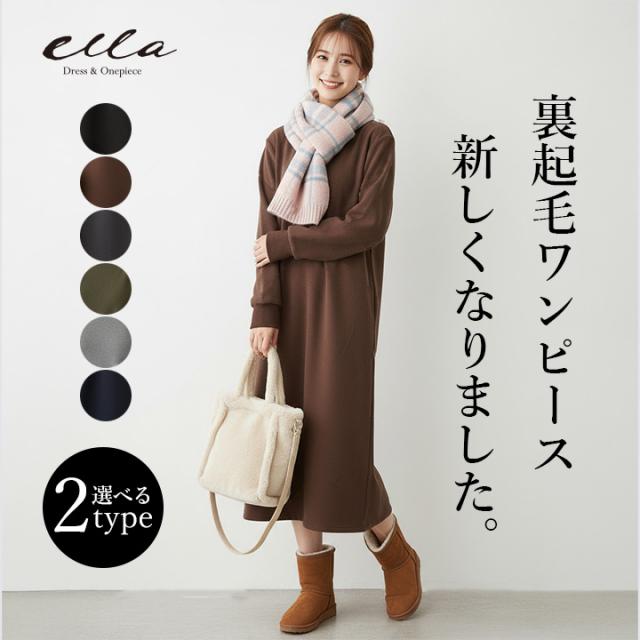 すっきり見せて中はぽかぽかな裏起毛ワンピース。