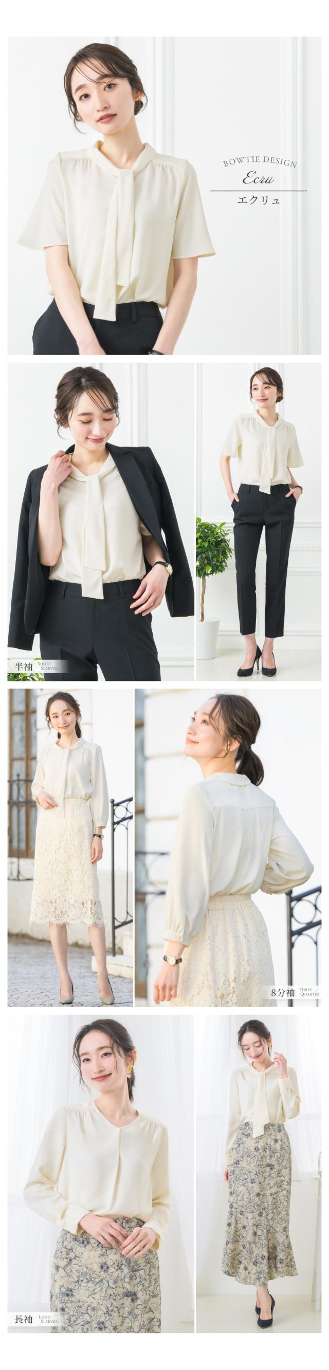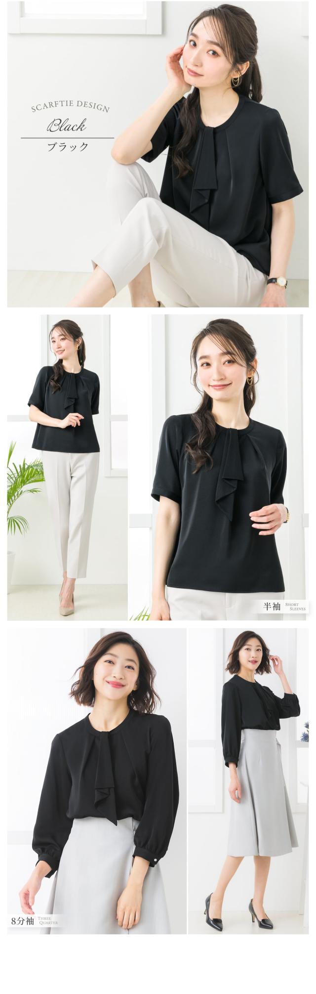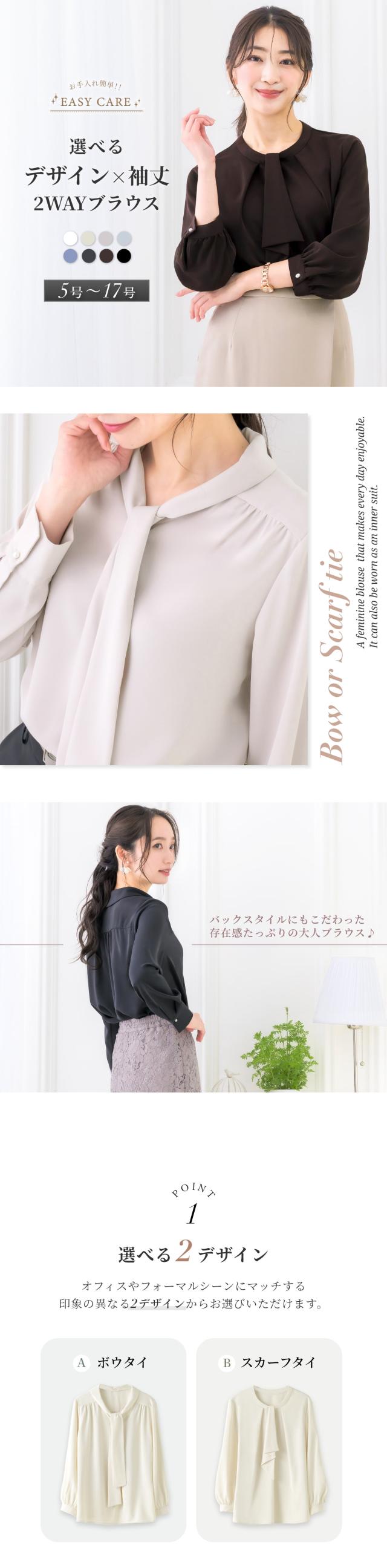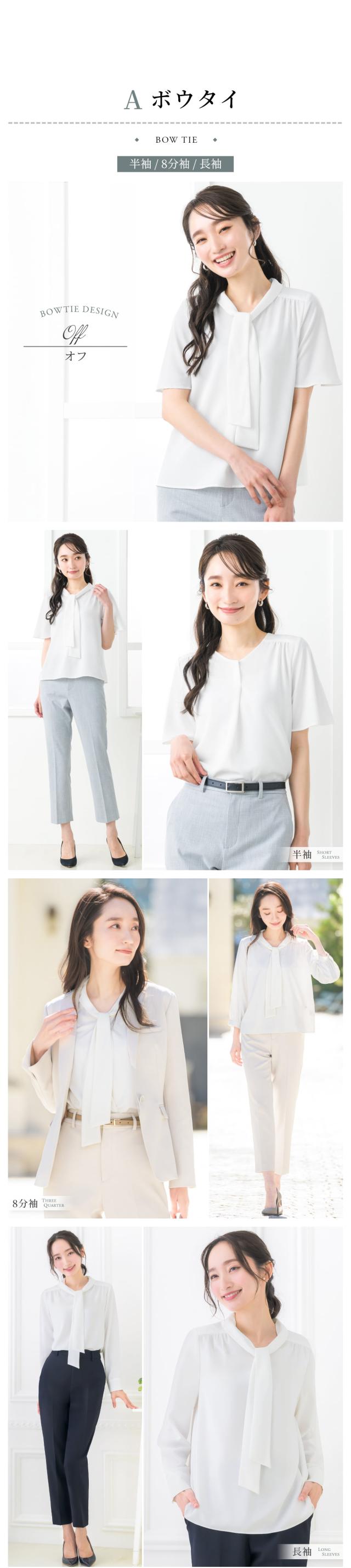 ブラウス レディース 一枚着 2WAY 選べる ボウタイ スカーフ タイ スーツ インナー トップス 半袖 8分袖 長袖 透けにくい 大きいサイズ 小さいサイズ 通勤 春 夏 秋 冬 セレモニー 大人 会社 ビジネス メール便送料無料 1/1