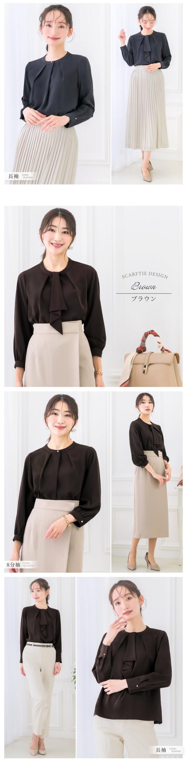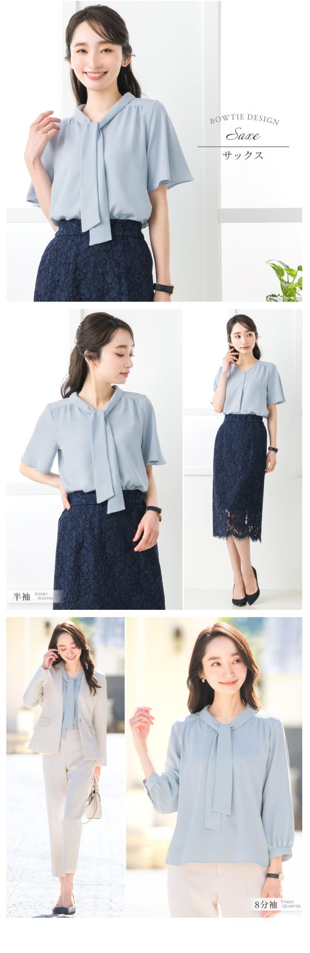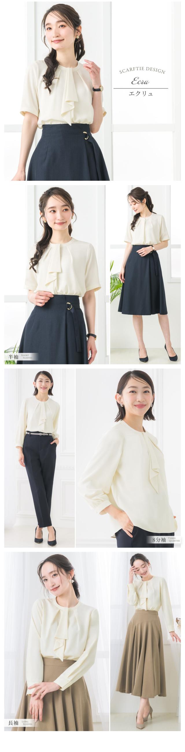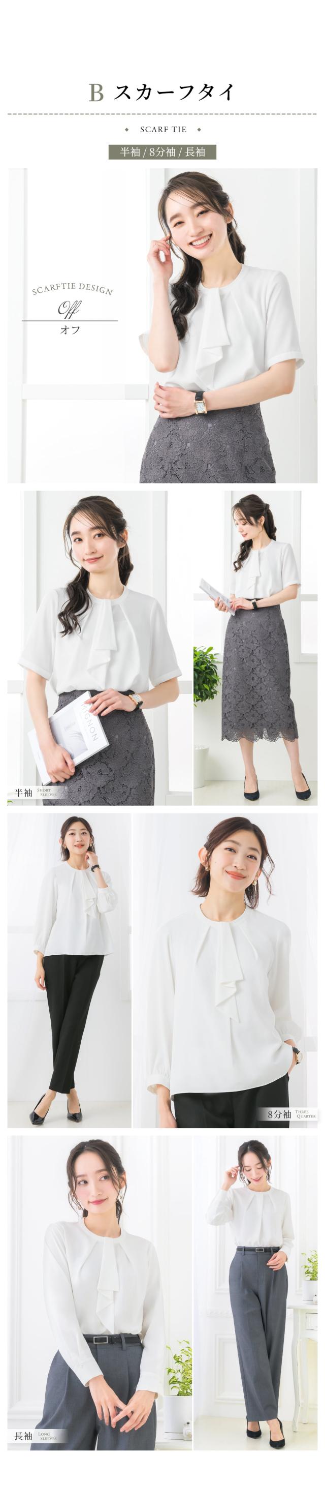 ブラウス レディース 一枚着 2WAY 選べる ボウタイ スカーフ タイ スーツ インナー トップス 半袖 8分袖 長袖 透けにくい 大きいサイズ 小さいサイズ 通勤 春 夏 秋 冬 セレモニー 大人 会社 ビジネス メール便送料無料 1/1