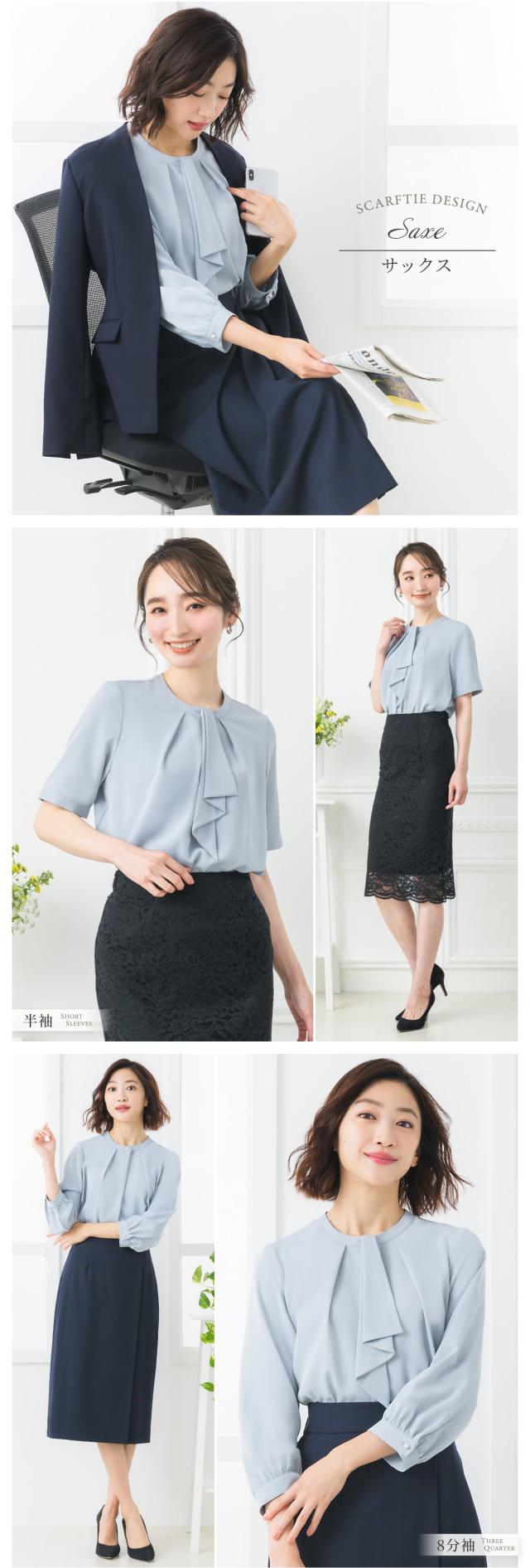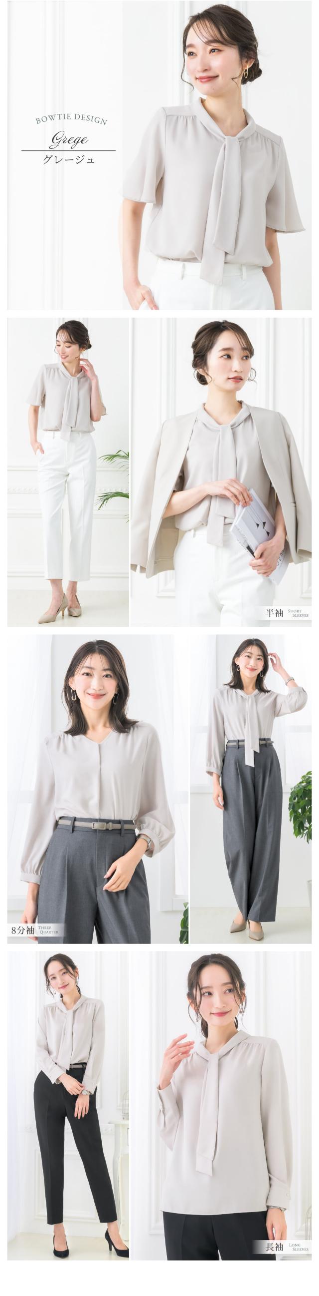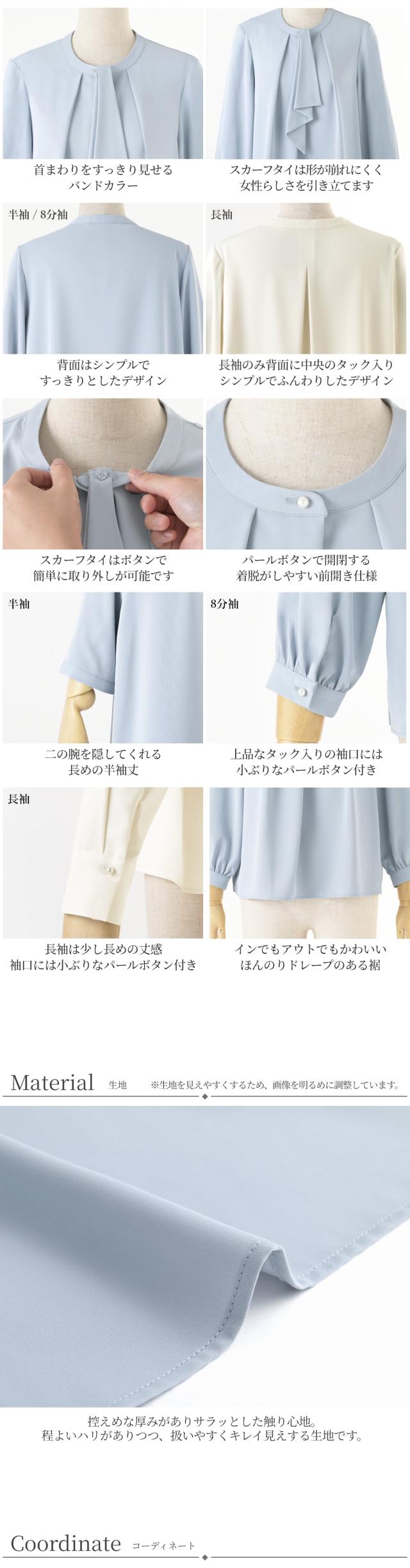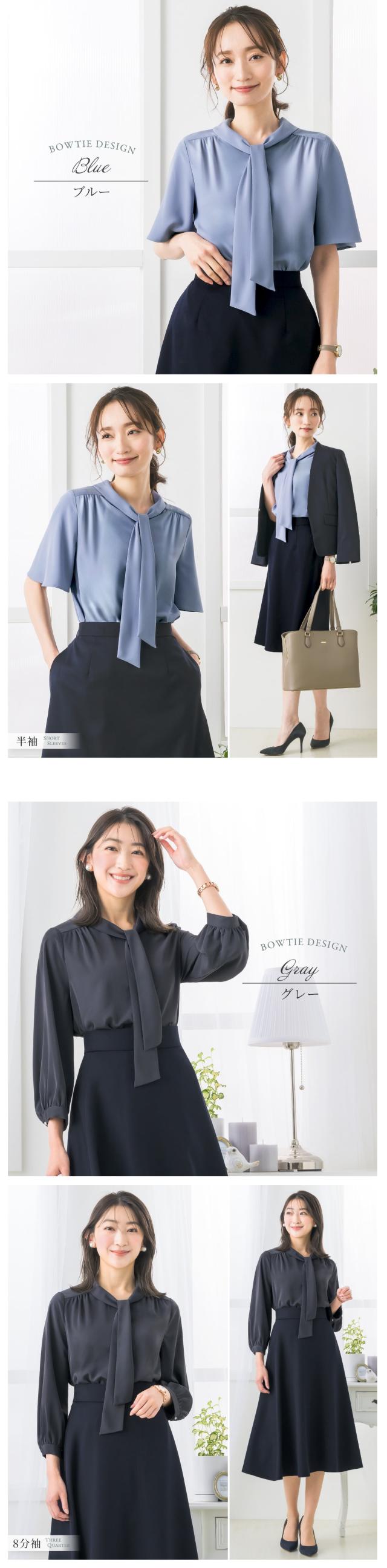 ブラウス レディース 一枚着 2WAY 選べる ボウタイ スカーフ タイ スーツ インナー トップス 半袖 8分袖 長袖 透けにくい 大きいサイズ 小さいサイズ 通勤 春 夏 秋 冬 セレモニー 大人 会社 ビジネス メール便送料無料 1/1