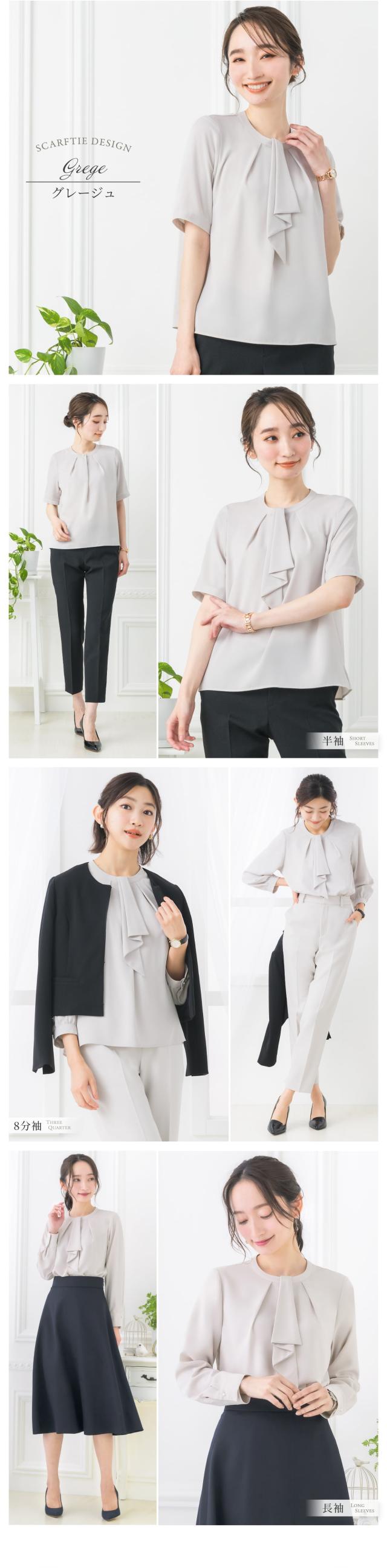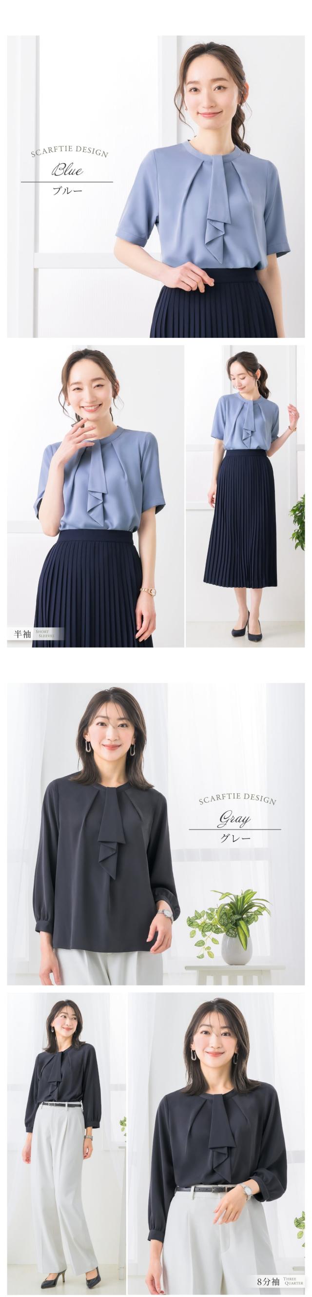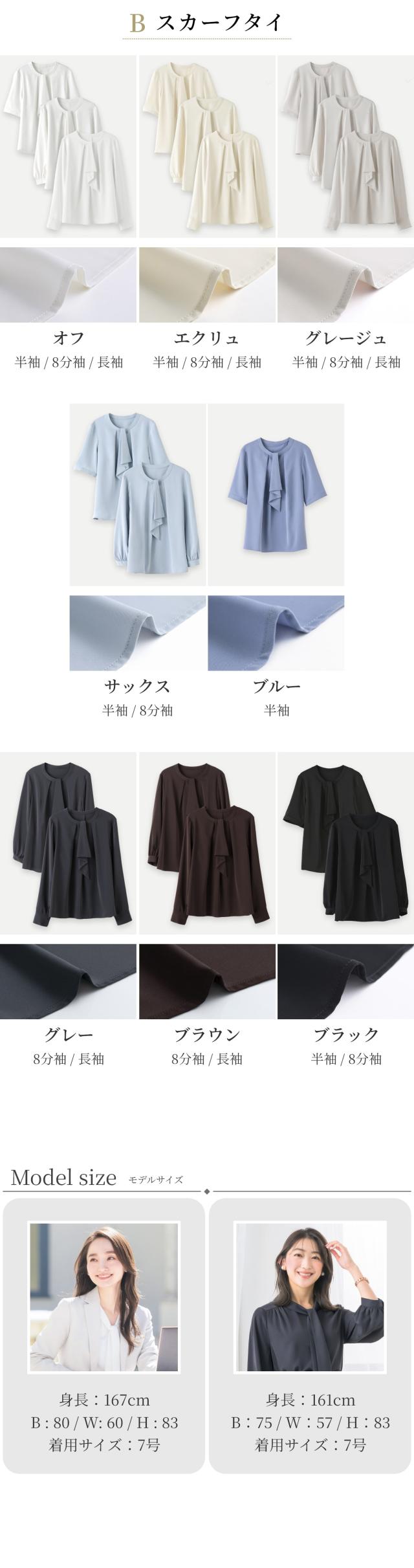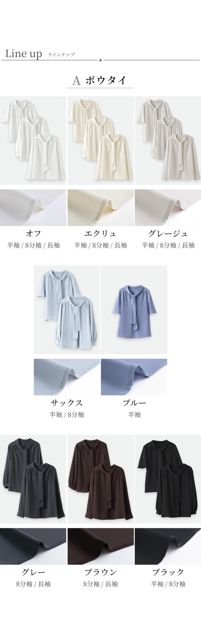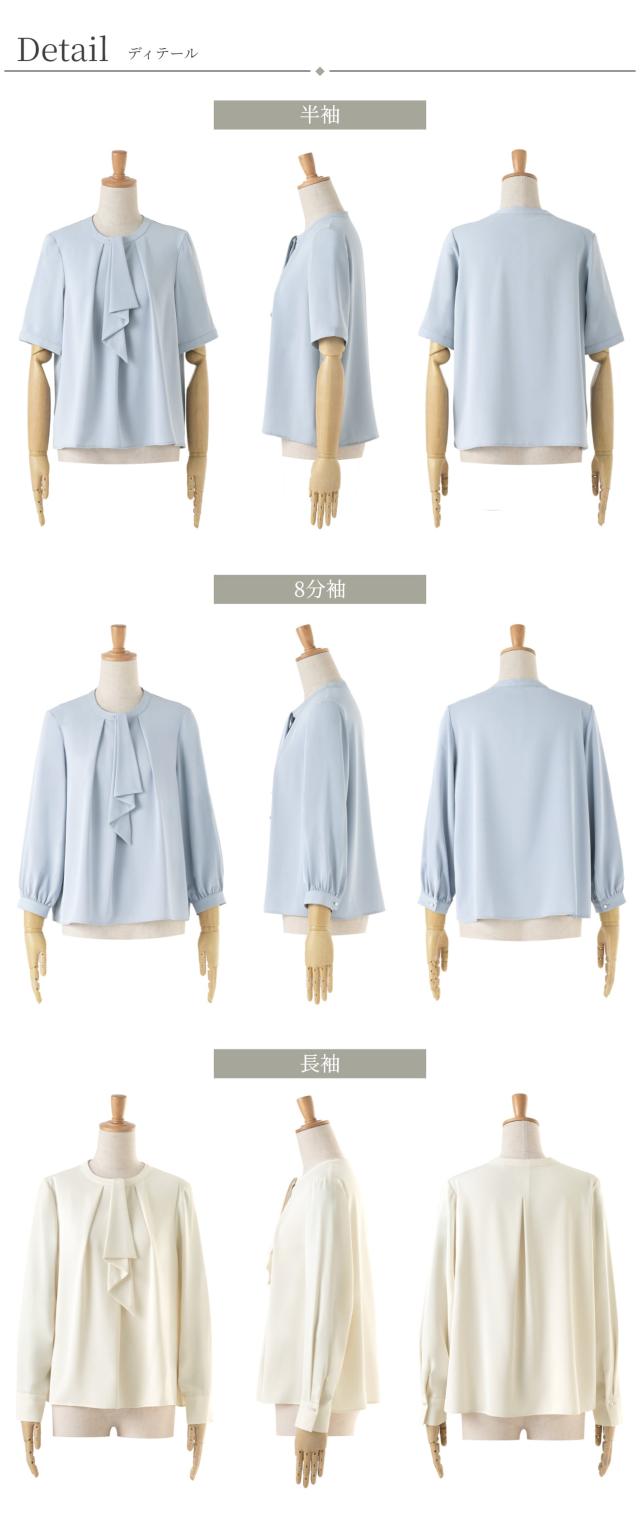 | 半袖 8分袖 長袖 2WAY ボウタイ スカーフタイ Vネック パールボタン タック ギャザー | |