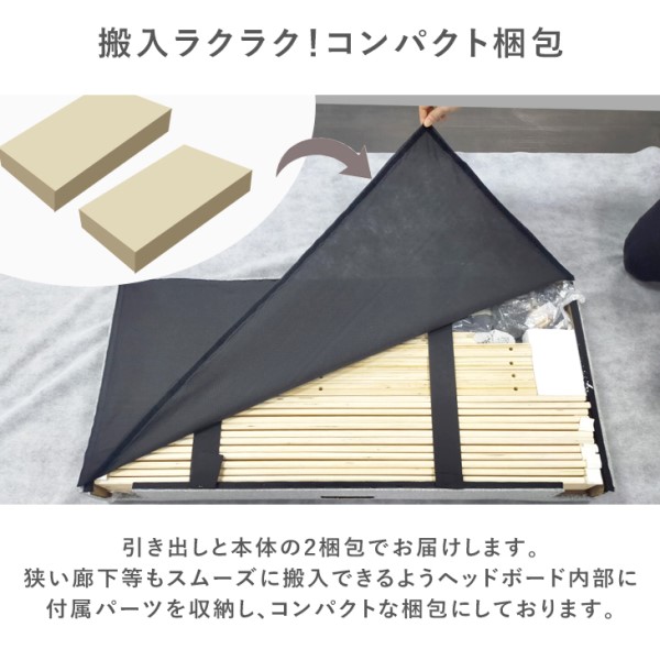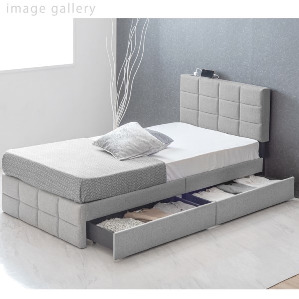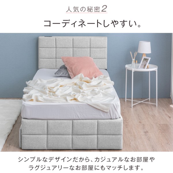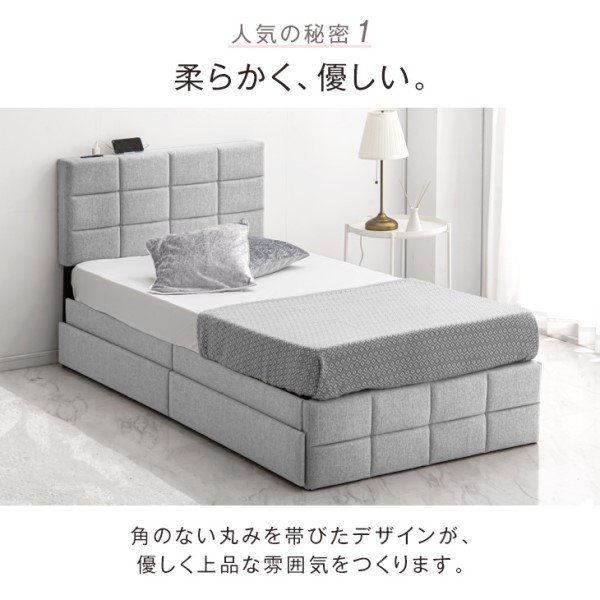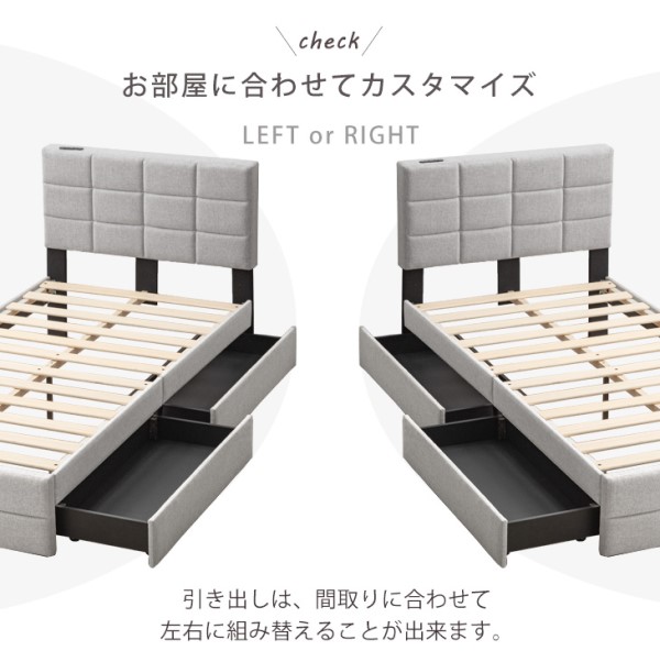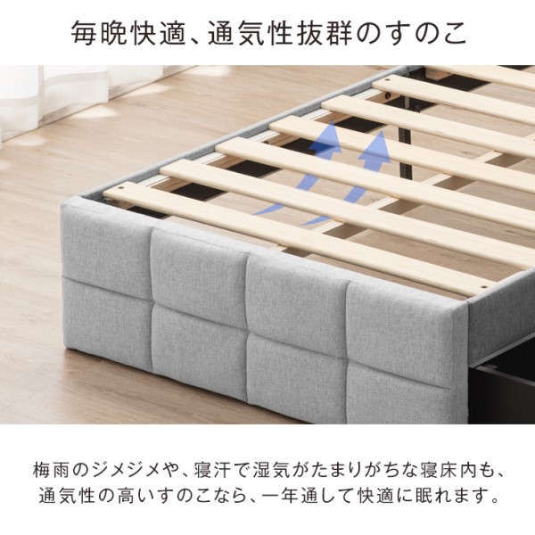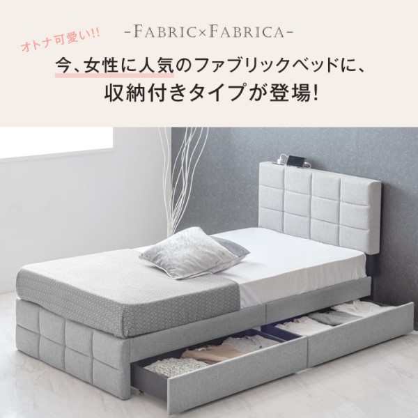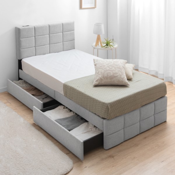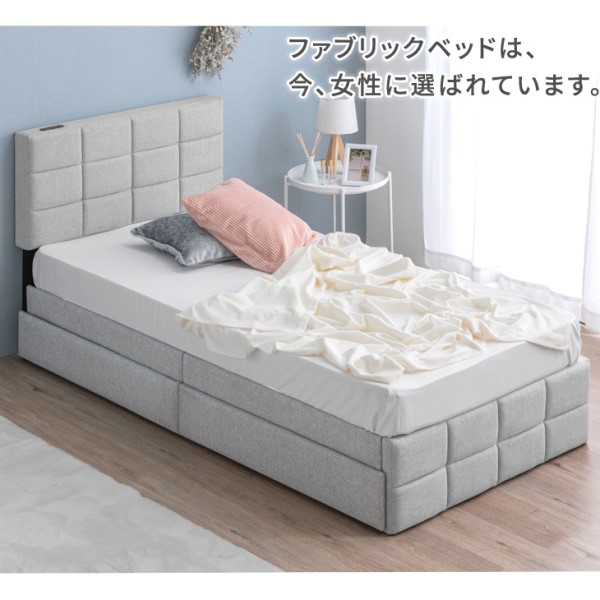 シングルベッド 収納付き ベッド ファブリック 2口コンセント付 ベッドフレーム 収納付きベッド 収納ベッド シングルベッド ファブリックベッド フレームのみ フレーム 単品 すのこベッド ベッド下収納 すのこ コンセント 収納 おしゃれ