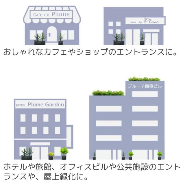 カフェ、店舗などのエントランス付近や、メインガーデン以外にも、公共施設での使用もおすすめです。 また鉢自体は軽量なので、荷重制限の厳しい屋上緑化などにも向いています。