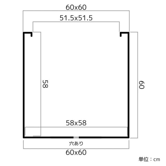 ・内寸(cm):口径幅:51.5 口径奥行:51.5 高さ:58 底面幅:58 底面奥行:58
