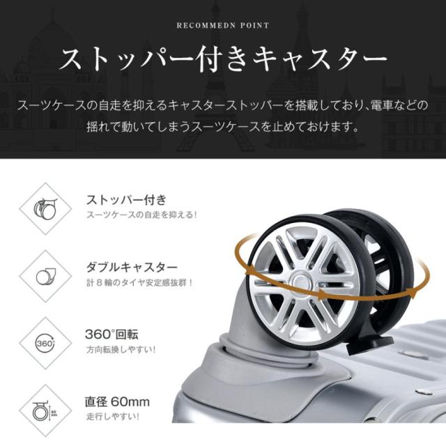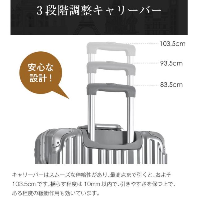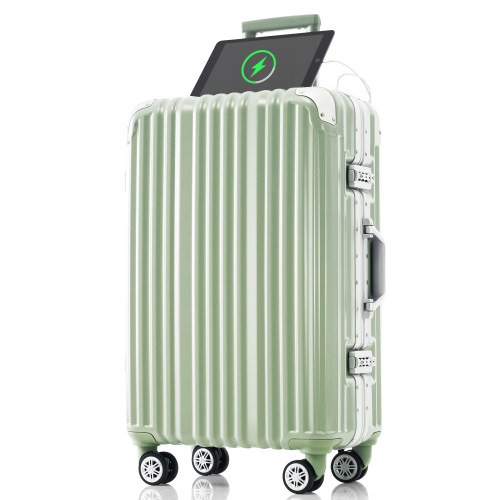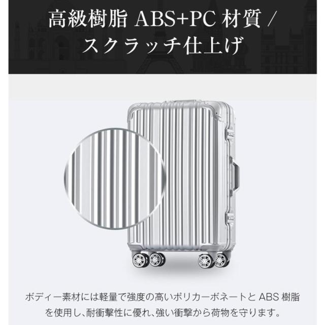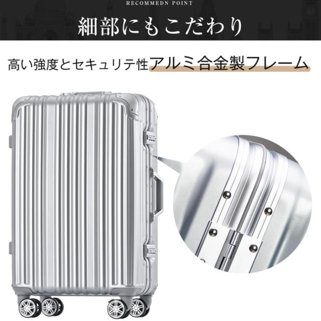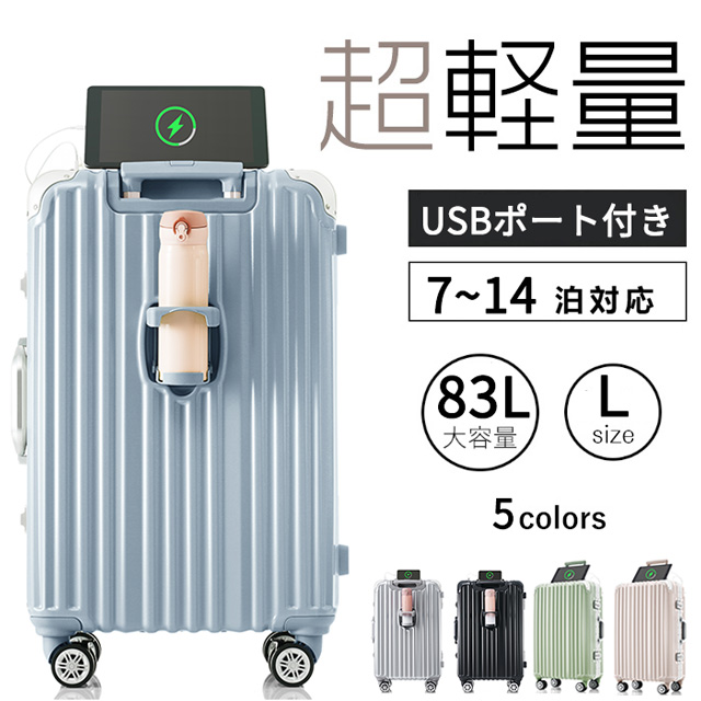 Lサイズ キャリーケース スーツケース キャリーバッグ USBポート付き アルミ ストッパー付き カップホルダー付き 超軽量 TSAロック搭載 360度回転 大型 7日-14日宿泊 旅行用 ビジネス 出張 人気 suitcase 一年間保証