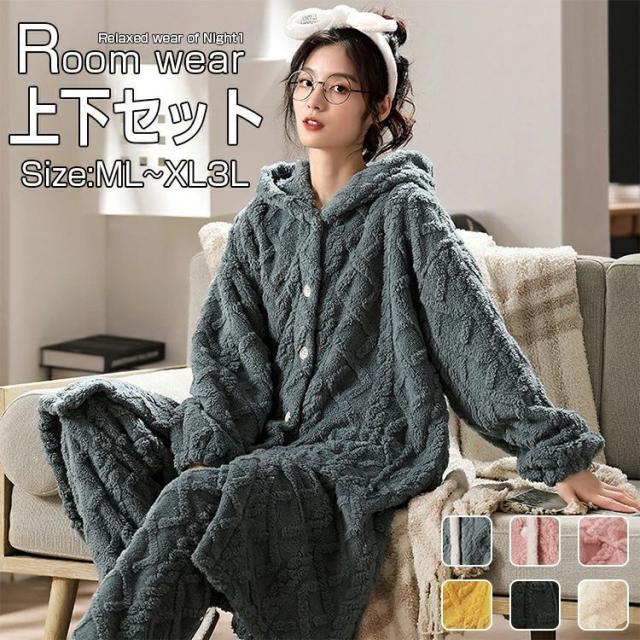 パジャマ ス 長袖 部屋着 レディース 冬 パジャマ レディース ルームウェア もこもこ 上下セット 大きいサイズ ワンピース 可愛い 長袖 ズボン 部屋着 モコモコ 2点セット m l 2l 3l 韓国風 秋冬 あったか ギフト かわいい 厚手 ゆったり
