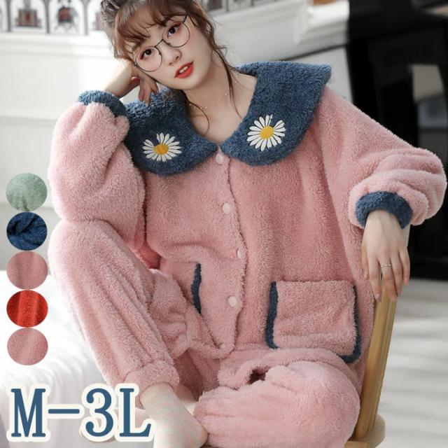 パジャマ レディース 冬 パジャマ レディース 冬 もこもこ ルームウェア レディース 秋冬 長袖 上下セット 可愛い 女性 部屋着 寝巻き プレゼント♪ 厚手 暖かい 韓国風 上下セット フランネル セットアップ 羽織り