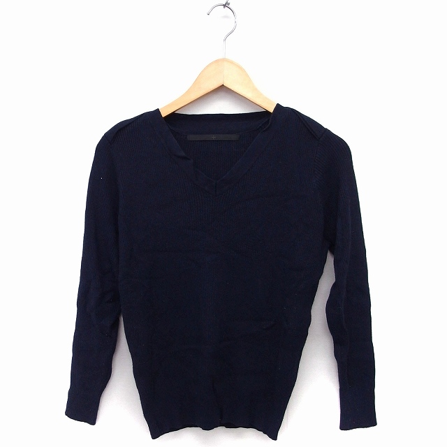 【中古】ケービーエフプラス KBF+ アーバンリサーチ Vネック ニット セーター 長袖 リブニット 無地 ONE ネイビー