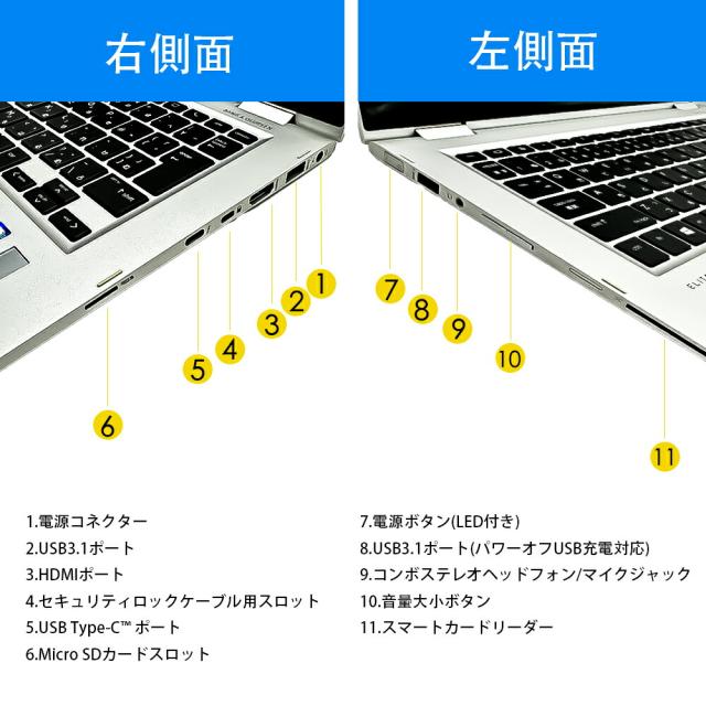 HP ELITEBOOK X360 1030 G2 SSD256GB メモリ8GB Core i5 Windows 10 Pro FHDタッチパネル液晶13.3型 WEBカメラ Bluetooth 無線LAN WPS Office付き 中古パソコン